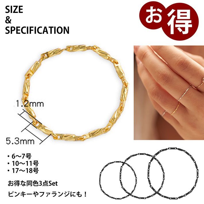指輪 メンズ レディース チェーンリング アクセサリー ファランジリング ピンキー 7987299 3サイズセット ゴールド 新品