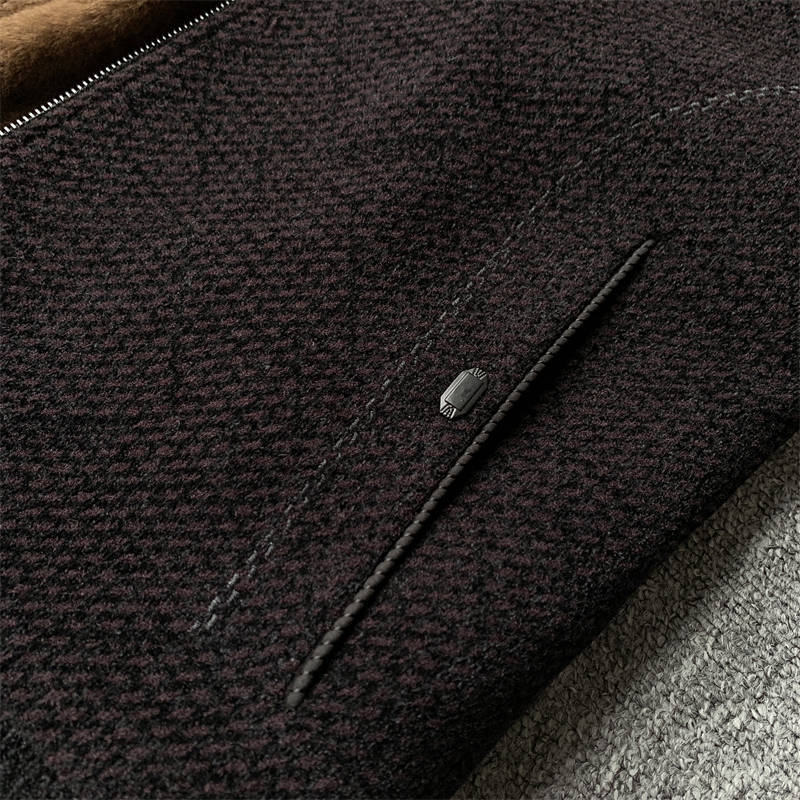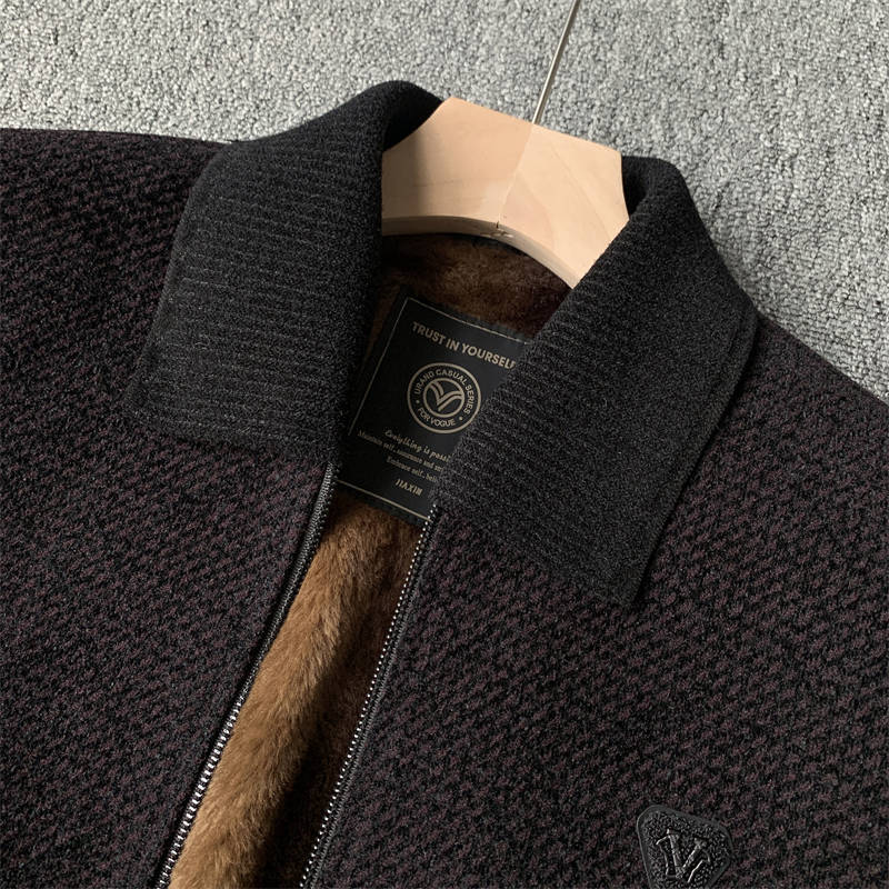 5555-L黒紫 裏ファー ジャケット メンズ ウール混 新品DCKMANY 暖かい 極暖 折り襟 厚手 秋冬 フルジップ ジャンパー 裏起毛 アウター