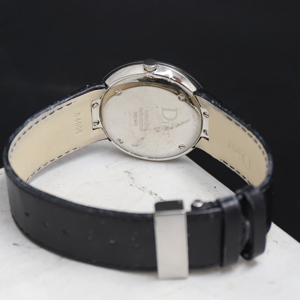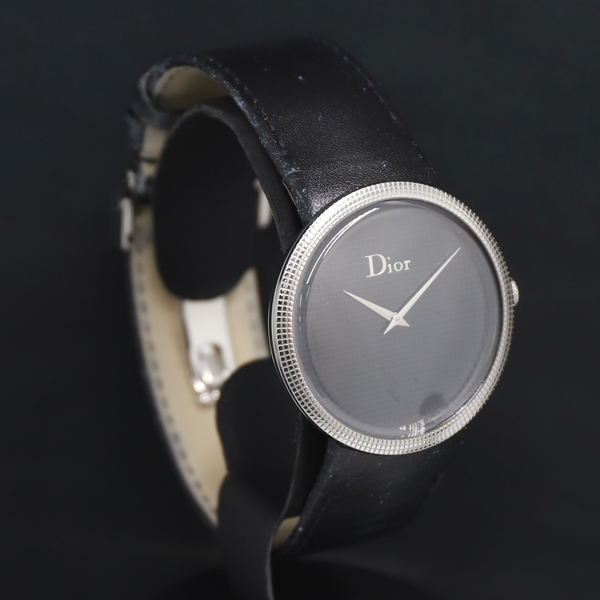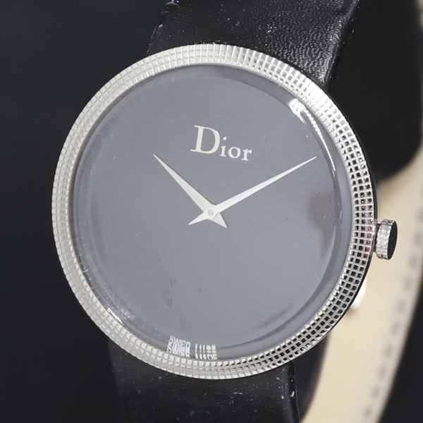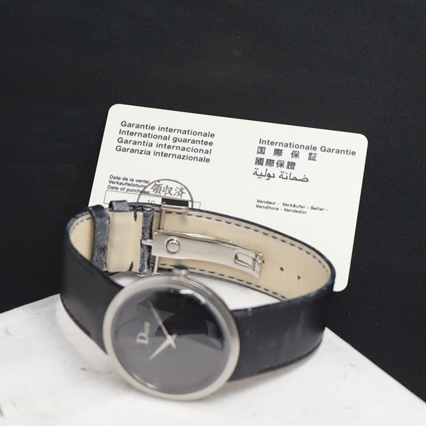1円 稼働 QZ 良品 保付 クリスチャンディオール CD043110 黒文字盤 レディース腕時計 0042000 10BKT KRK
