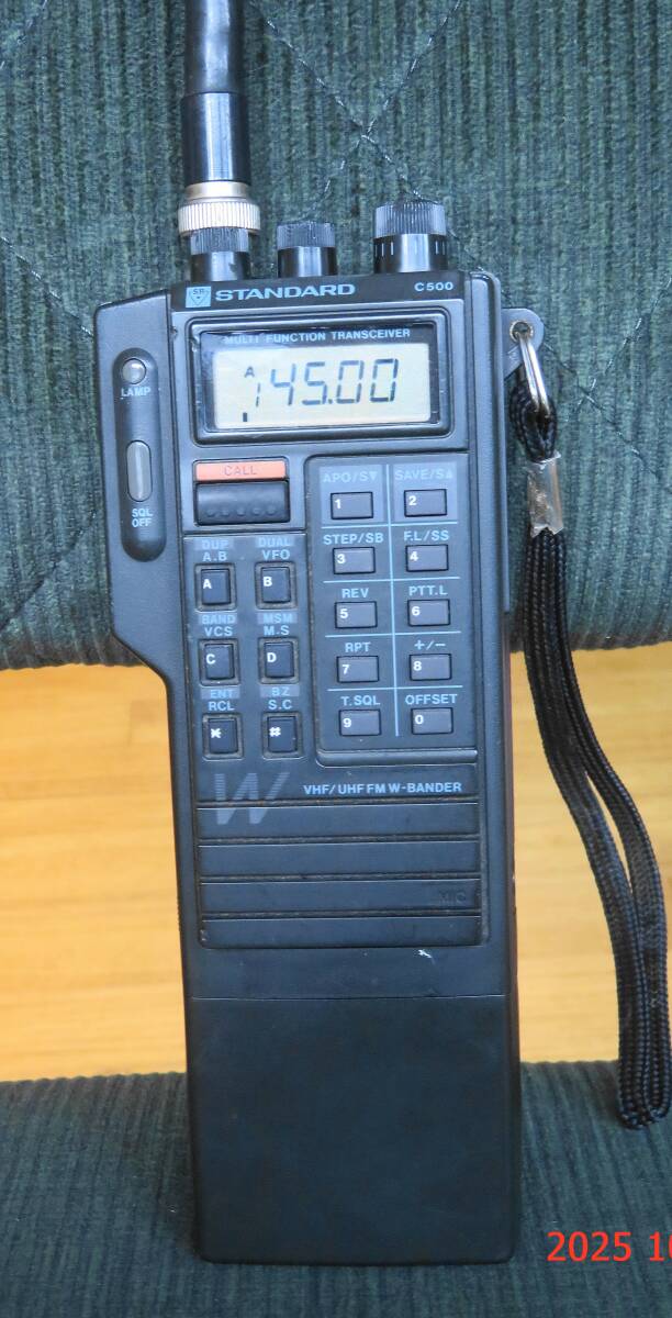 ご覧頂き有り難うございます。古い機種スタンダードC500です。在庫していますハンディーを使用する予定もないので処分します。送受信コマンドにて送受信改造してあります、ご使用の際にはくれぐれも電波法違反の無いようにご使用ください。古い機種の為塗装の剥がれ、擦り傷等あります、乾電池パック内部錆はありません、廃局の為送信も出来なく保管品の処分です、アンテナは社外品がついています、送料は全国どこでも同じのレターパックで配送いたします。以上宜しくお願い致します。