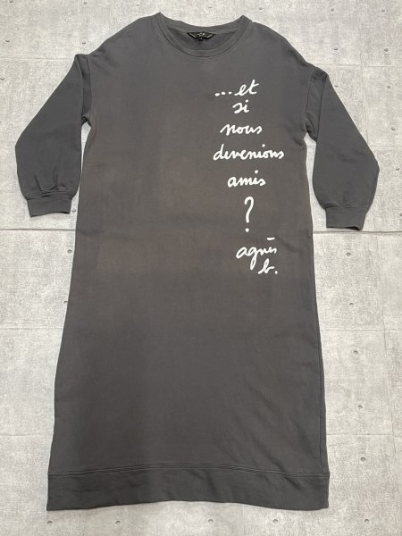 To b. by agns b. ワンピース トゥービーバイアニエスベー  スウェット ビッグロゴ デカロゴプリント パイル裏地 グレー 石瀬7513 サイズ38 ロングワンピース フェード 色褪せ