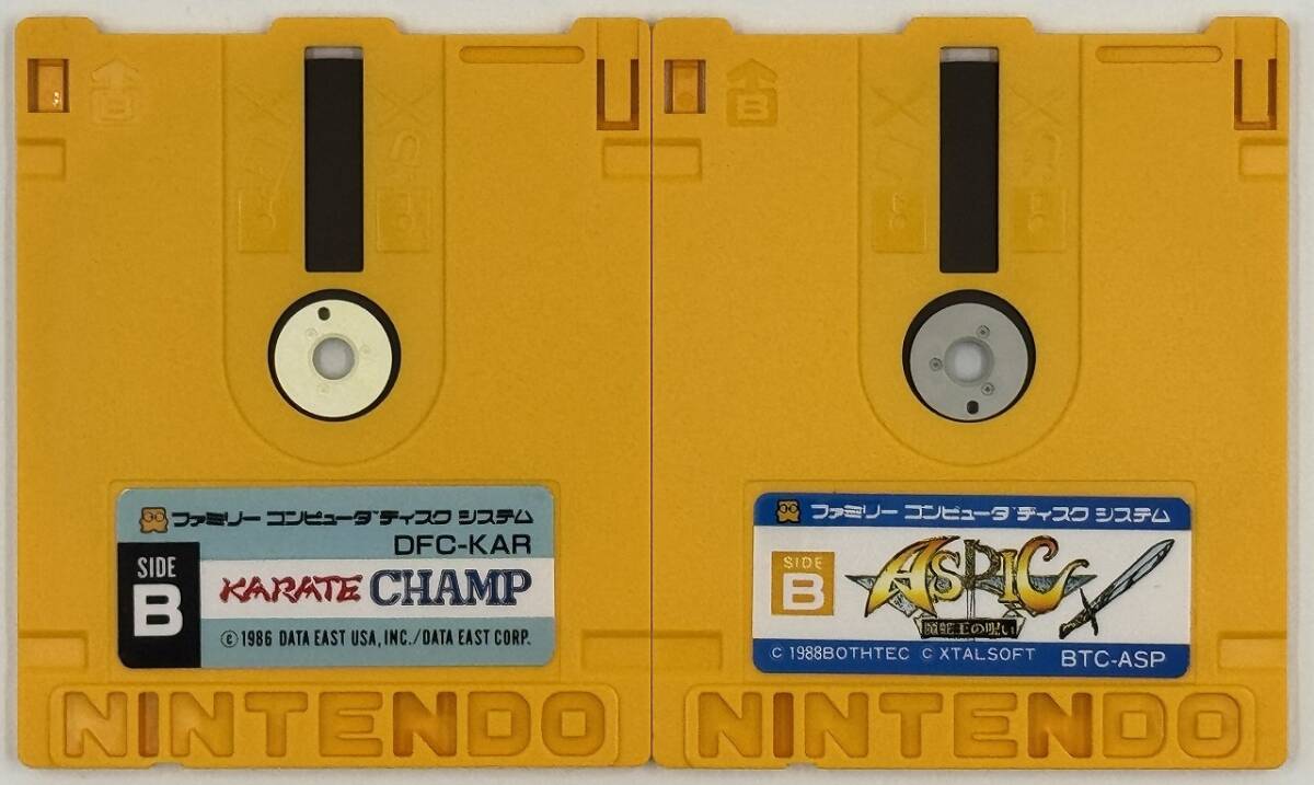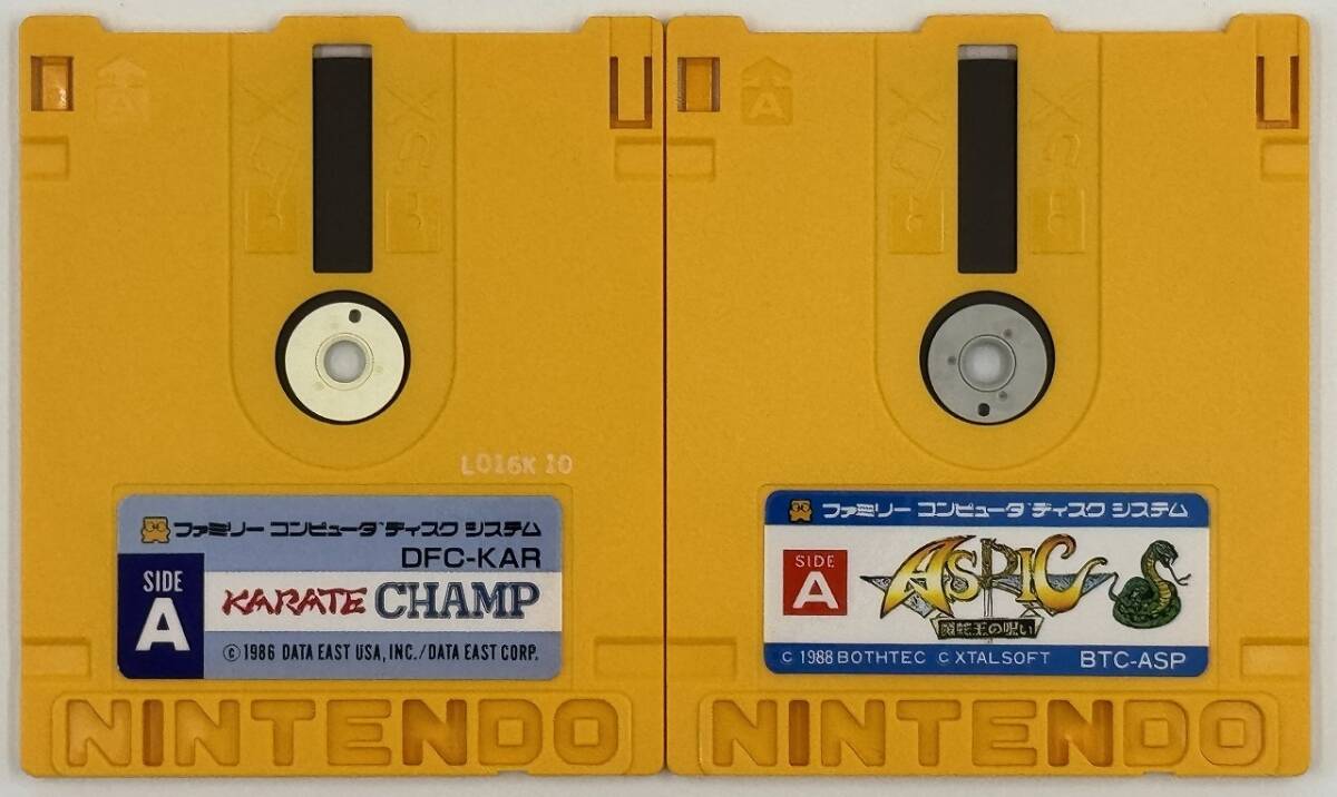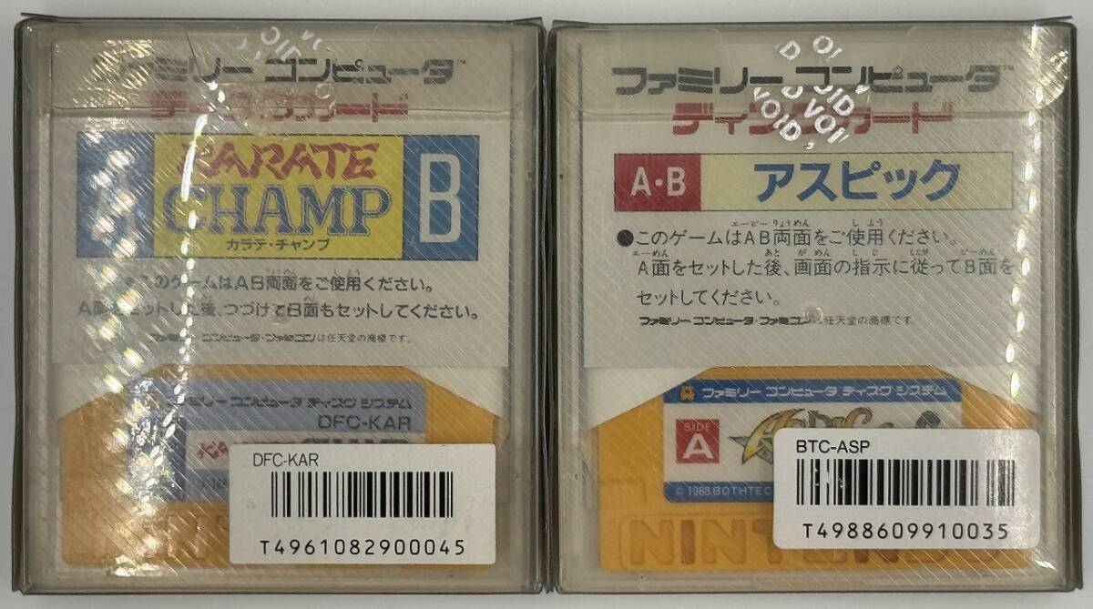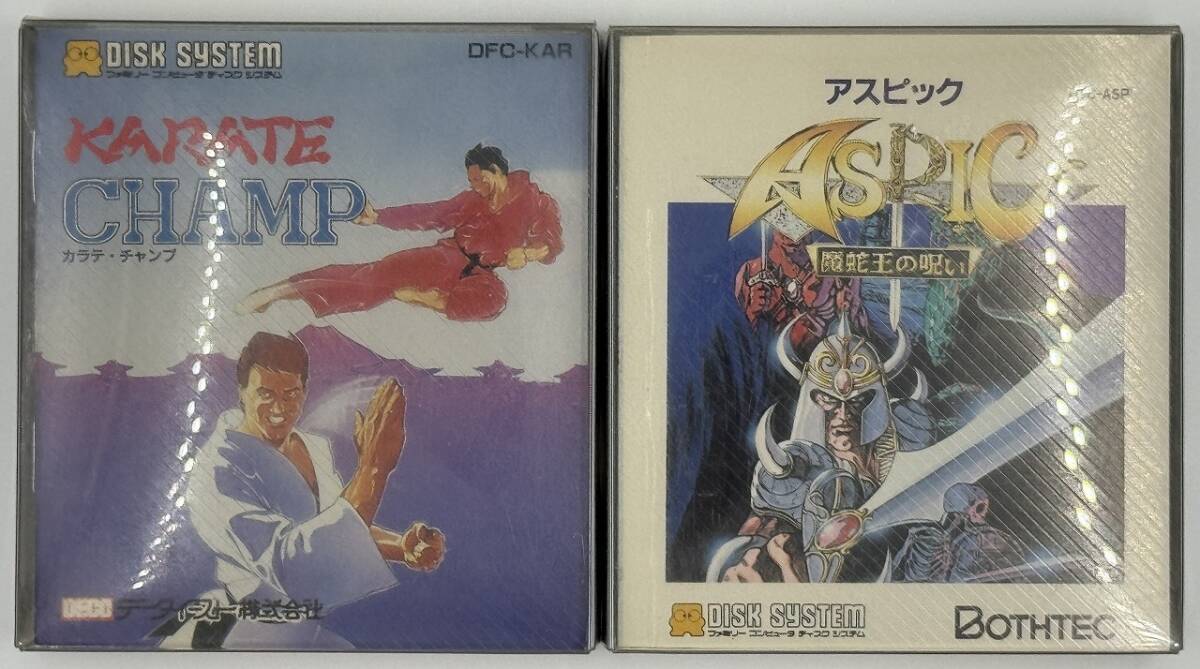 商品名:KARATE CHAMP カラテ・チャンプ & ASPIC アスピック 魔蛇王の呪い ファミコンディスク2枚SET 箱付き中古