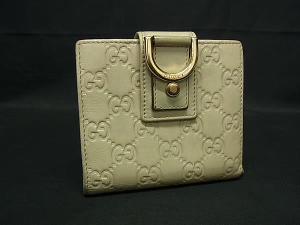 1円 GUCCI グッチ 15 255 4276 アビー グッチシマ レザー 二つ折り 財布 ウォレット レディース アイボリー系 FT1701
