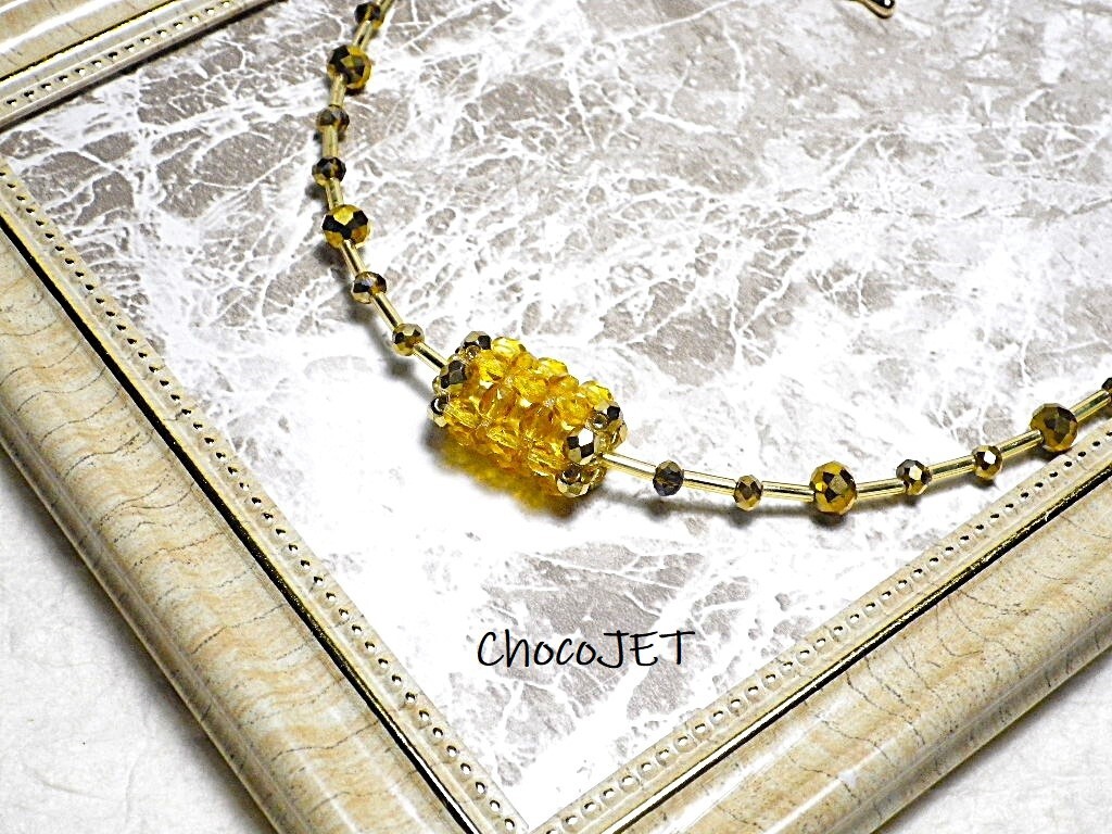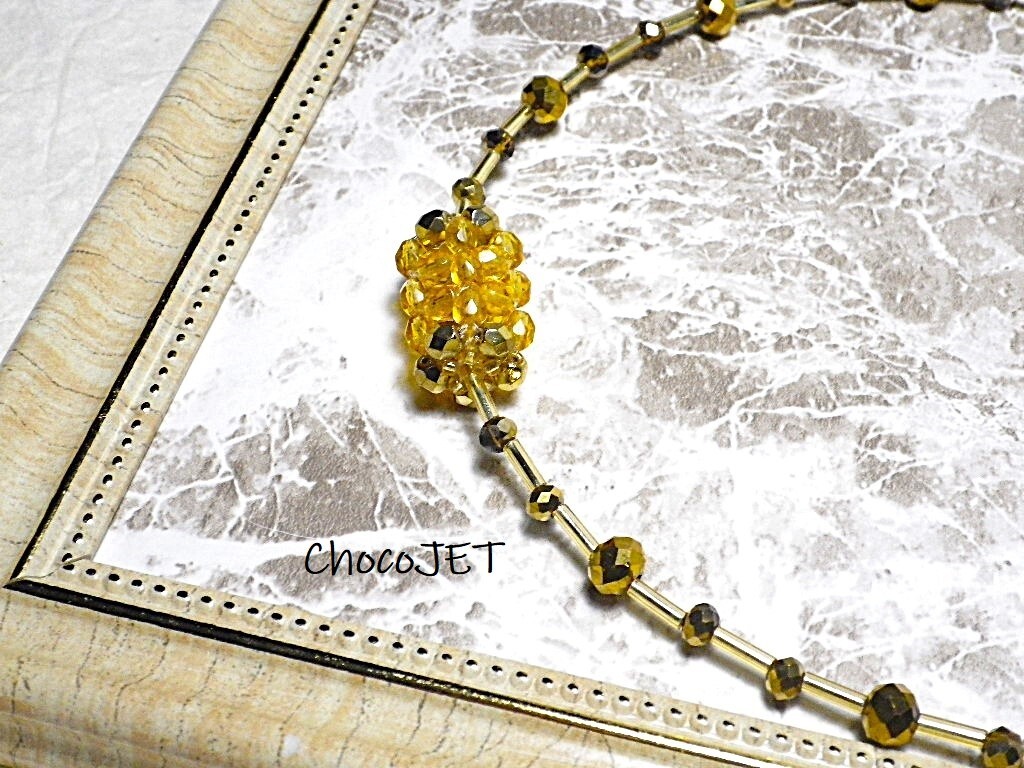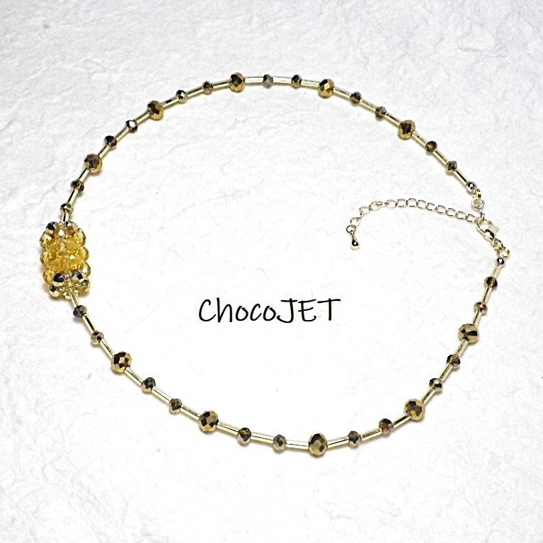 チェコビーズの円柱型、ガラスカットビーズ、竹ビーズ使用のキラキラと輝くネックレスです。