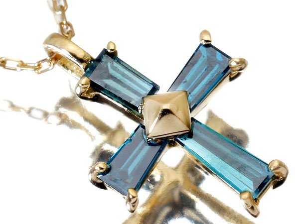 1円~【ジュエリー極】クロスデザイン!天然ブルーダイヤモンド0.25ct 高級K18YGペンダントネックレス w5781vv【送料無料】