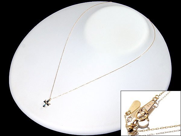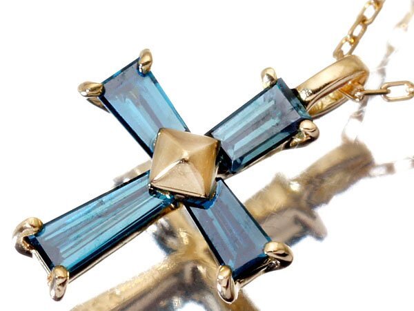クロスデザイン輝く天然ブルーダイヤモンド総計0.25ctを素敵に宝飾した、高級K18イエローゴールドペンダントネックレスを1円から特別大放出致します!