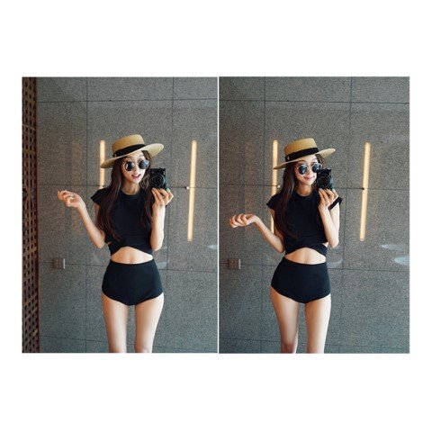 ・お腹をチラッと肌見せオールブラックビキニ。パッド入りでバストをホールドしてくれます。