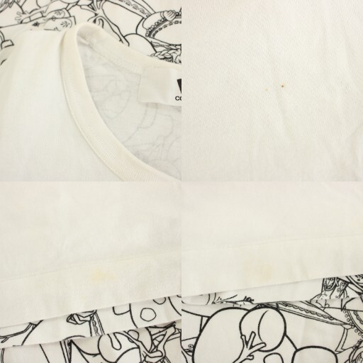 【状態】こちらの商品には下記のようなダメージがあります。 ・首周り周辺に薄い黄ばみ ・所々に茶色の点汚れ ・裾の所々に黄色の薄いシミ複数 ・プリント部分に色剥げ (写真7・8枚目参照) ※全体的に中古品としての使用感と上記のようなダメージがあります。掲載写真や掲載内容をご確認いただき、ご理解の上ご購入ください。