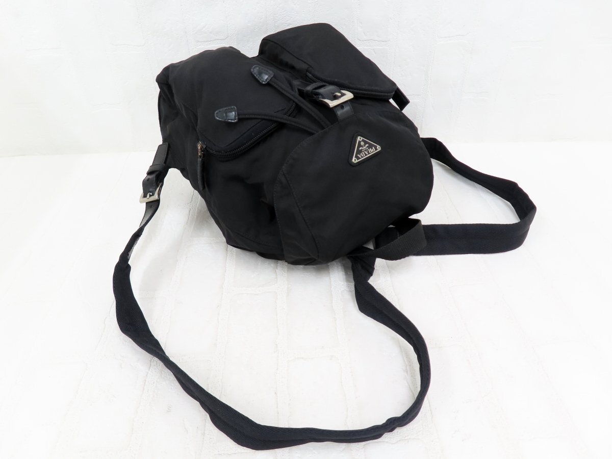 ◆PRADA プラダ◆ナイロン カーフ レザー 本革◆リュック サック バックパック◆ブラック SV金具◆イタリア製◆三角ロゴプレート◆A13654