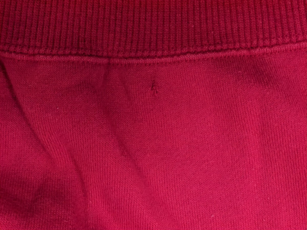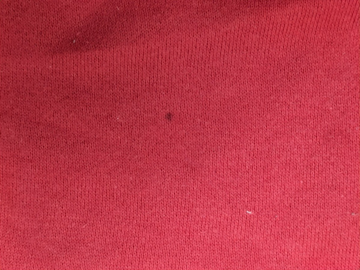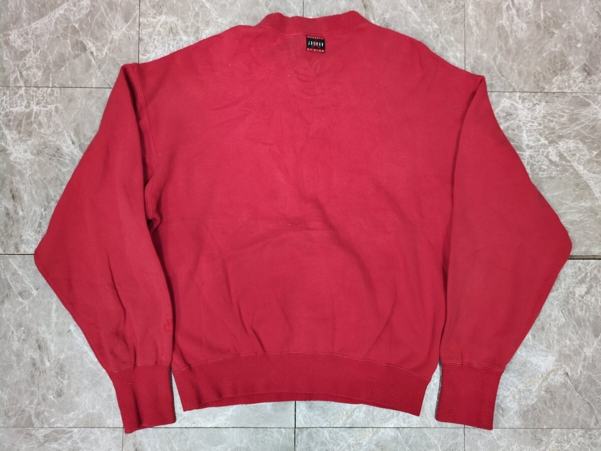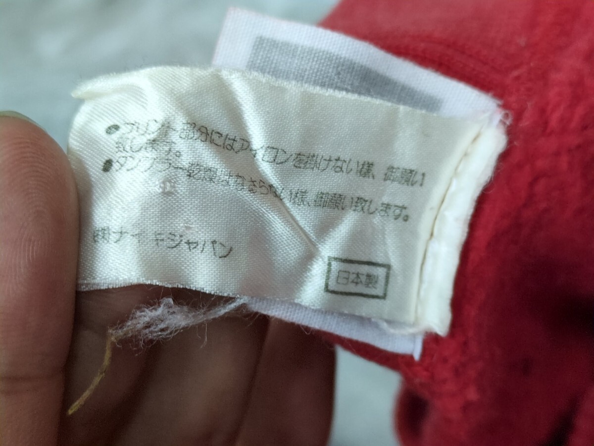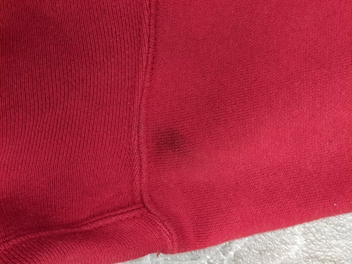 正規品です。 【肩幅】68 【着丈】67 【身幅】67 【袖丈】63 【ウエスト】 【総丈】 【股下】 【裾幅】 色は赤。 使用感、色褪せあり。バック中央付近に点汚れ。バック下部に点穴。右袖付け根付近に汚れ |