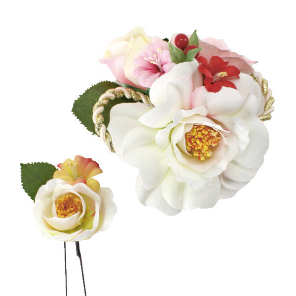 ★着物美人 ★ 髪飾り 白 椿 南天 369551 ★新品★
