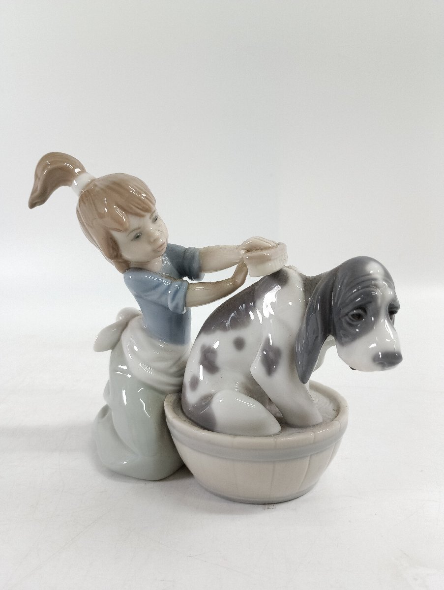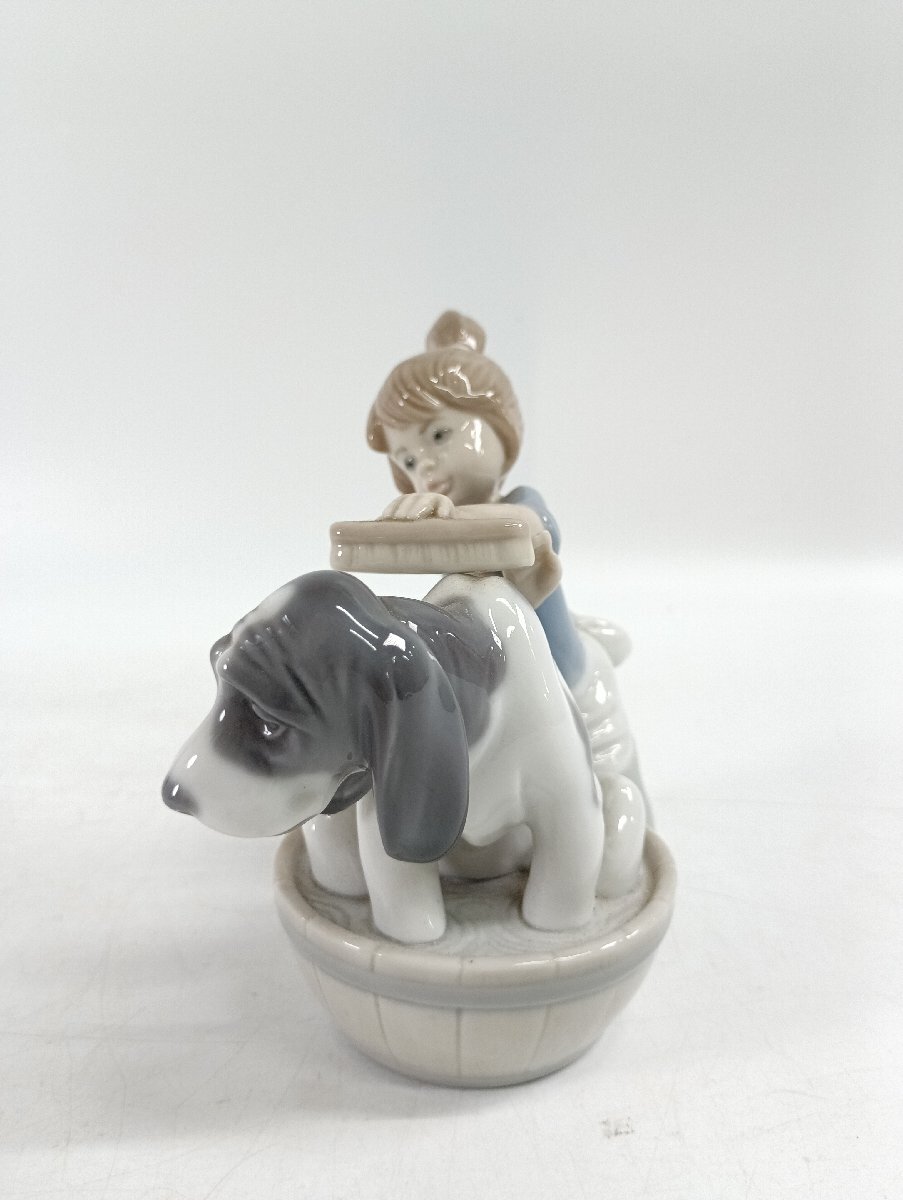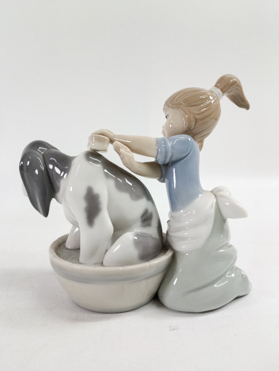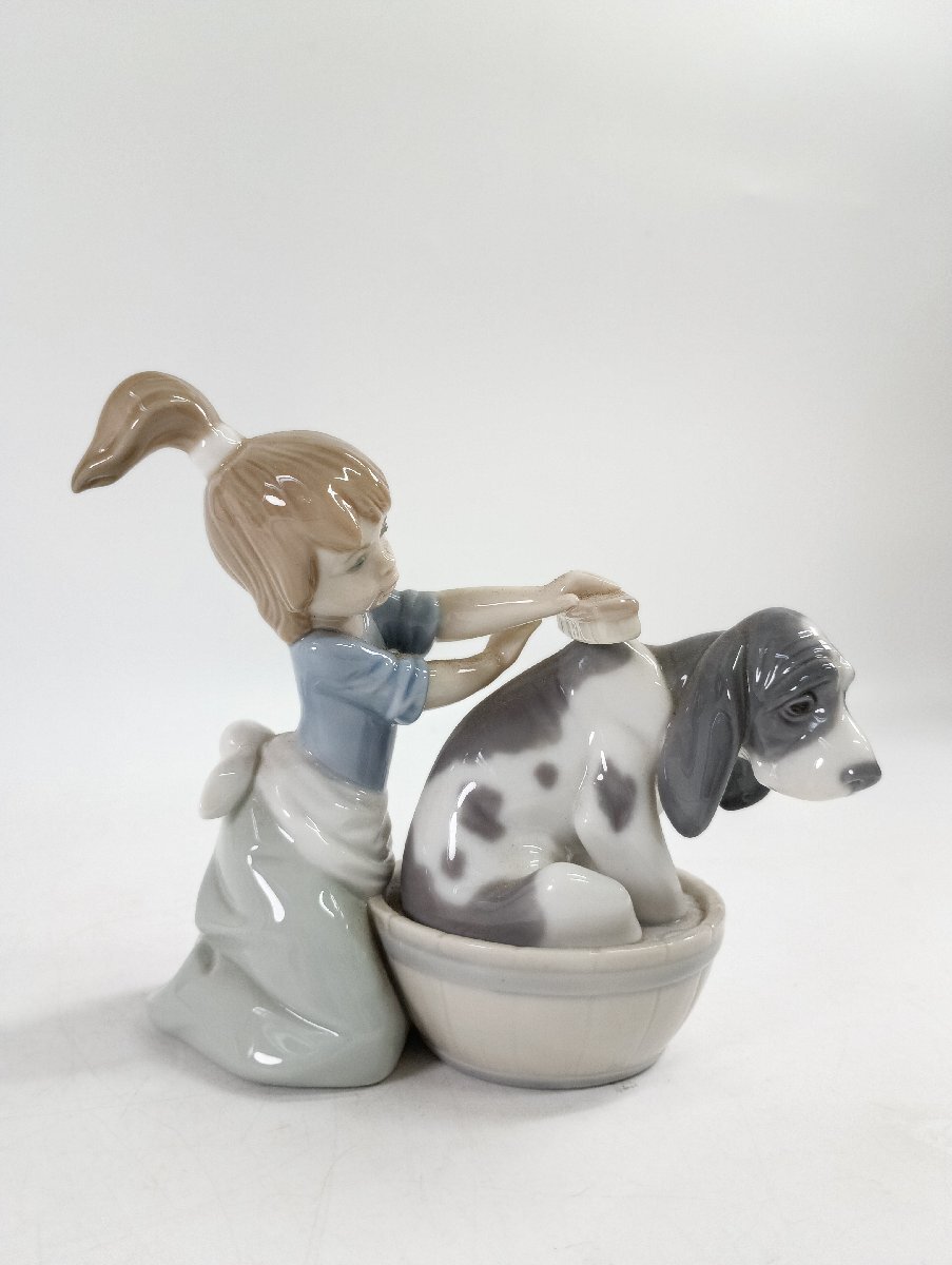 【和の美】 ★1円スタート★ LLADRO リヤドロ フィギュリン きれいにしましょうね 置物 陶器 陶磁 高さ約12.5㎝ ワンちゃん 動物 誕生
