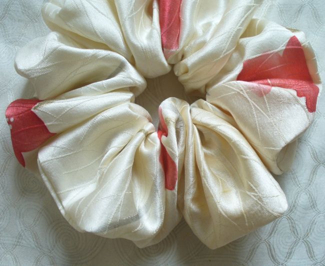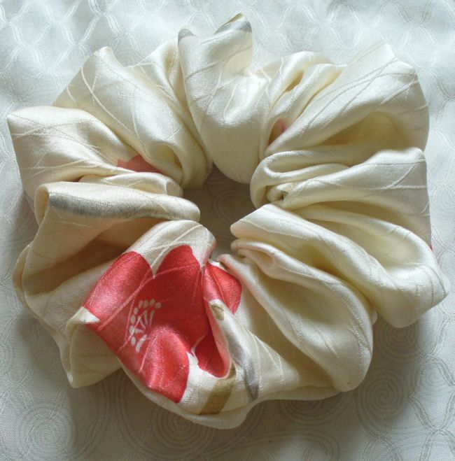 ゴム交換可能 抽象織り出し フリル シュシュ シルク 着物リメイク 和柄 手縫い ハンドメイド リメイク 着物 和物