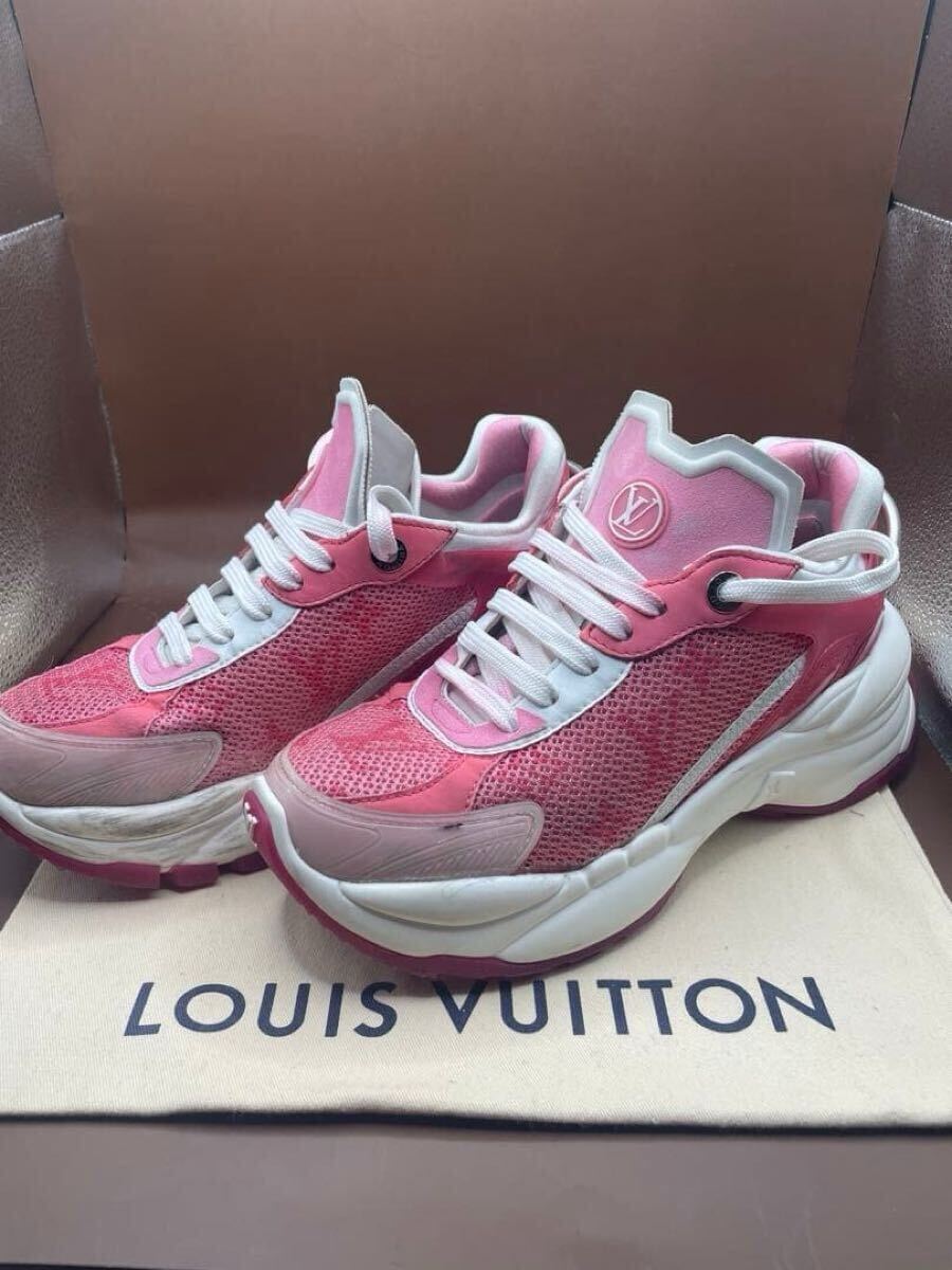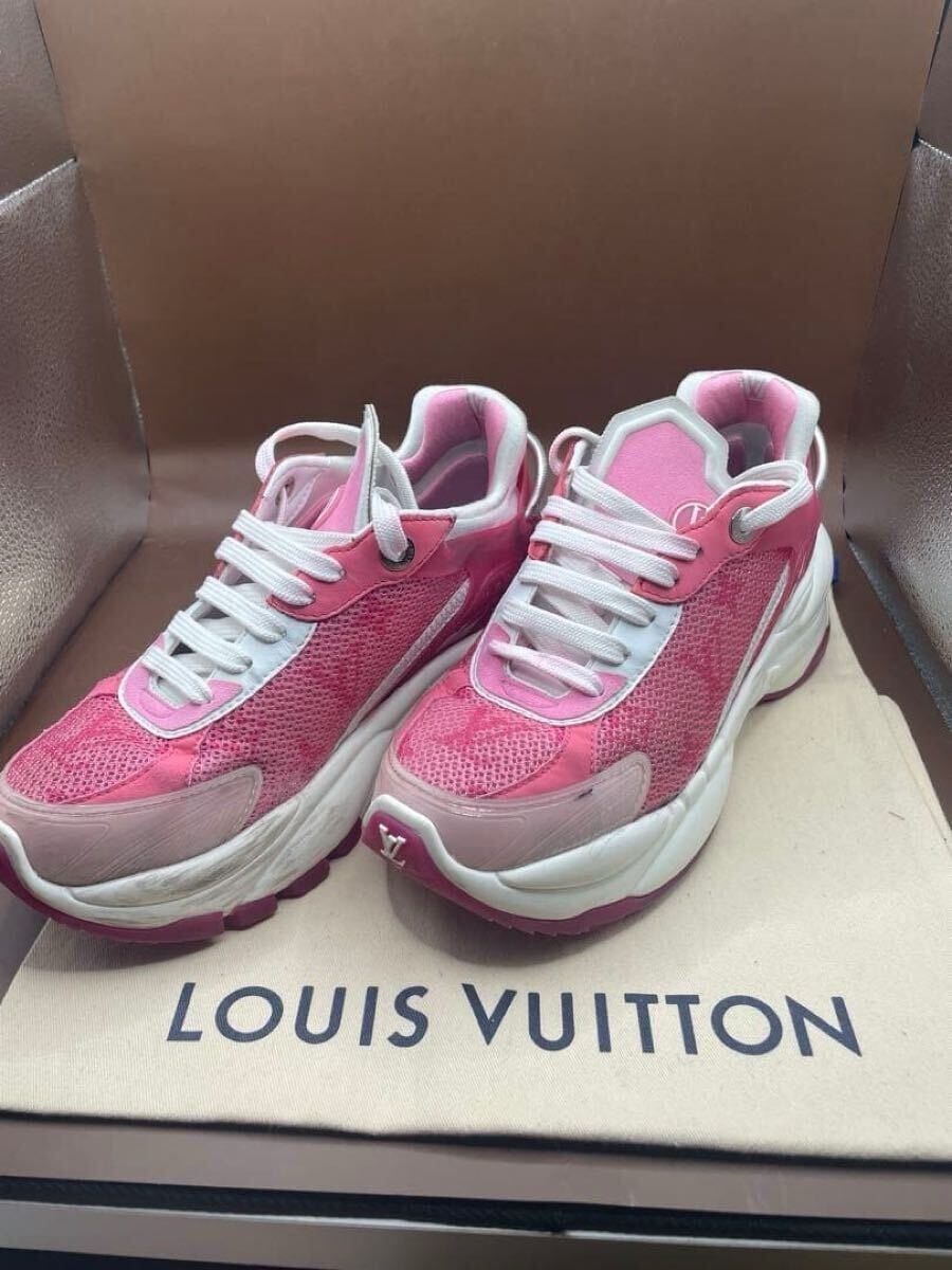 希少カラー ルイヴィトン Louis Vuitton ラン55 スニーカー モノグラム ピンク レディース 36 22.5〜23cm相当