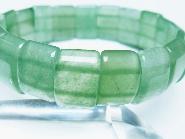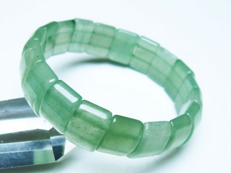 ■商品名: インド翡翠バングル ■商品ID: T379-3612 ■商品重量:約 32.2g ■商品サイズ: 高約:15mm 横約:10mm 厚約:6mm 内径円周約:158mm(±5mm) 【インド翡翠(アベンチュリン)】 エメラルドや翡翠と同じ5月の誕生石です。 アベンチュリンは雲母やヘマタイト、ゲーサイトを内包することによって粒子状にキラキラと輝くアベンチュレッセンス(アベンチュリン効果)を持つ鉱物全般を指し、「インド翡翠」は翡翠ではなくグリーンアベンチュリンの別称です。 インドではアベンチュリンの資源が豊富でグリーンアベンチュリンが翡翠の代用品として用いられていたことからこの名で呼ばれるようになりました。 アベンチュリンは洞察力や本質を見極める力を与えてくれます。 また、マイナスの感情を静めて円滑なコミュニケーションを促してくれる効果もあるとされますので、人間関係で悩みがちな方やリーダーシップを発揮する立場でストレスを抱え込んでしまうという方におすすめの石です。 ⇒ インド翡翠(アベンチュリン)をもっと詳しく ◆ワンポイント情報 一般的にアベンチュリンというと緑色のグリーンアベンチュリンを指す場合がほんとんどですが、内包物の種類によって赤色~ピンク、白色や青色など様々な色合いが存在します。 |