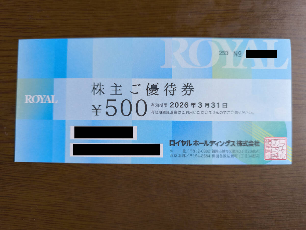 ロイヤルホールディングス株主優待500円券×24枚、計12000円分の出品です。 有効期限は、2026年3月31日です。 早期終了する場合がありますので、ご了承ください。 落札後3日以内に決済完了をお願いします。 決済完了いただけない場合は、落札者都合にて落札を削除させていただきます。 |