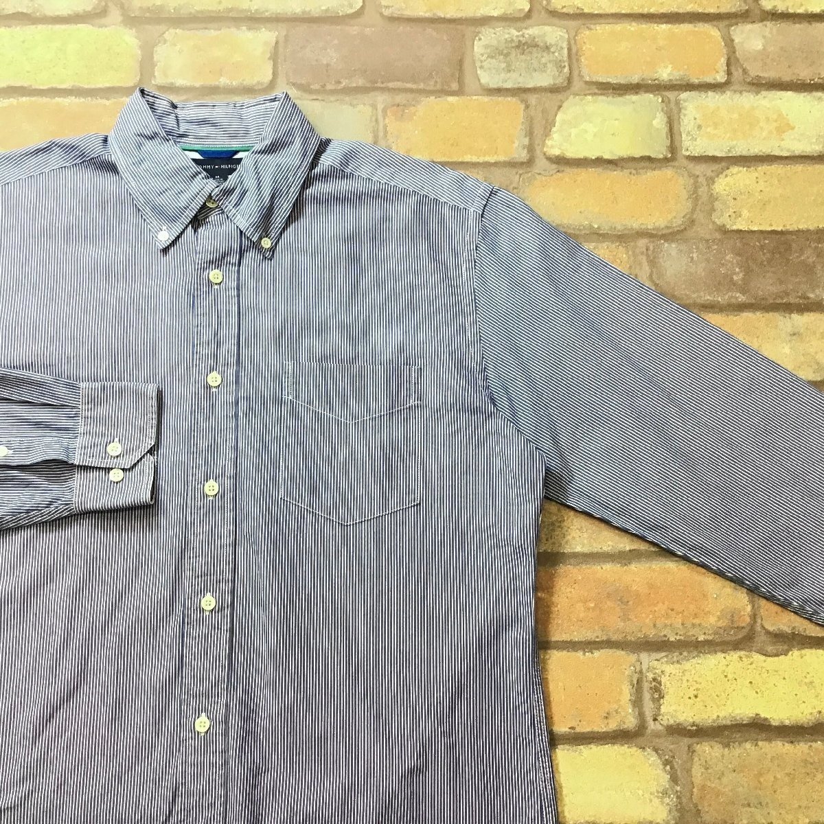 合計落札金額¥8,000円以上で、、、 送料無料!! ※こちらからの[合計支払い金額通知]をご確認の上、お支払い下さい♪ -------------------------------- 【 TOMMY HILFIGER トミーヒルフィガー 】 長袖 ピンストライプシャツ ● USA輸入・正規品 ● ● 海外サイズ規格 ● ● スペアボタン (大2)● -------------------------------------------------------- 汚れ・ダメージなく、コンディション良好です。 ★USA購入 正規 美品★ ピンストライプのキレイめな1着 ブルー×ホワイトカラーで使いやすくお薦めですよ♪ ------------------------------------------------------ ◆ サイズ ◆ メンズ M ※下記実寸のご確認をお願いいたします。 ◆ 実寸◆ 肩幅:49cm 身幅:59cm(両脇下間を計測) 着丈:80cm(背面襟元~裾を計測) 袖丈:65cm 素人採寸の為、多少の誤差はお許しください。 -------------------------------------------------------- ◆ 素材表記 ◆ コットン 100% ----------------- | |||||