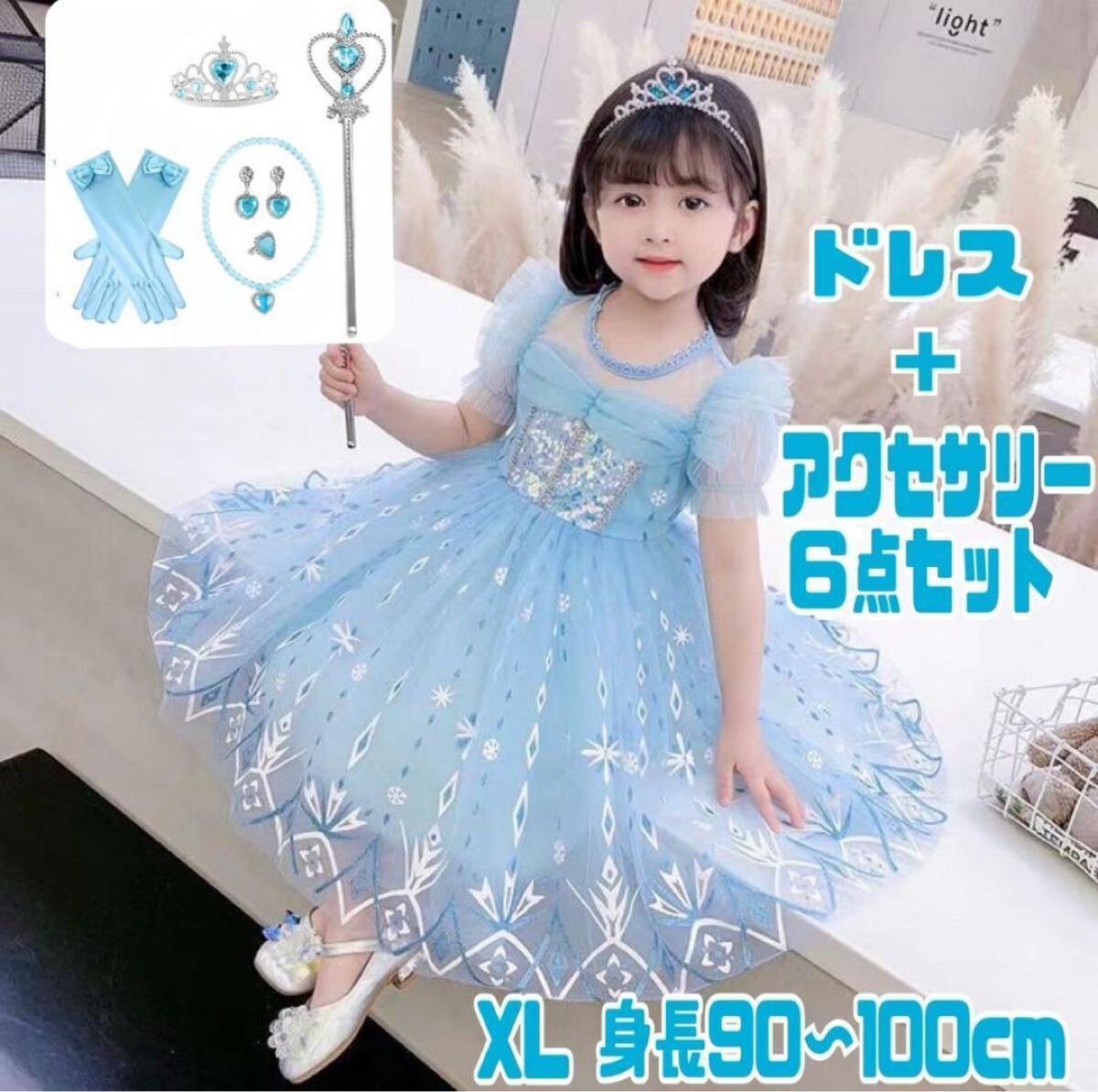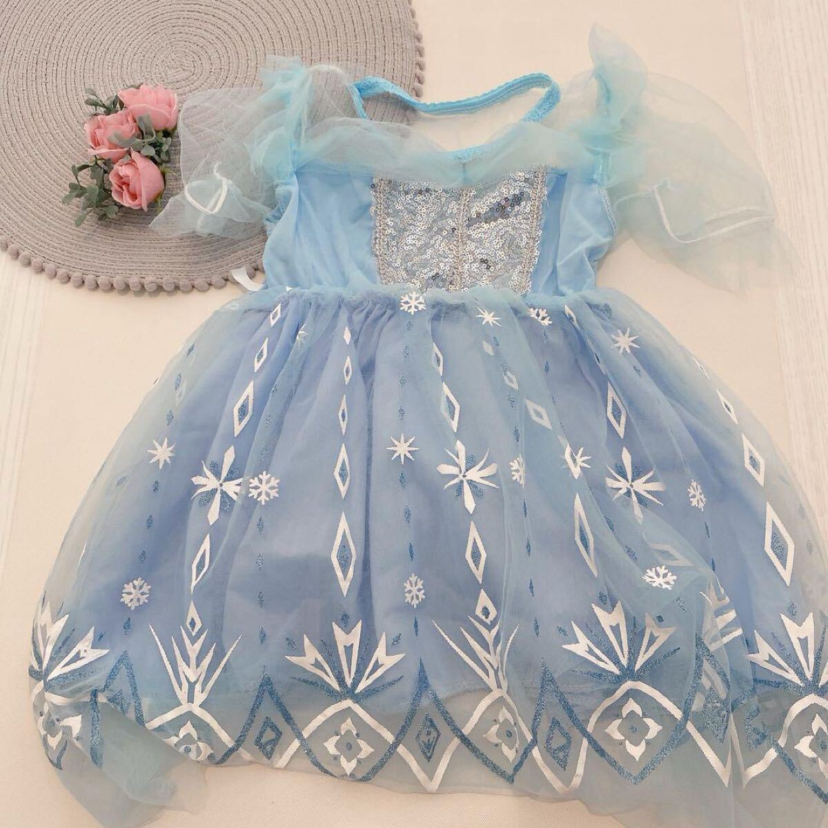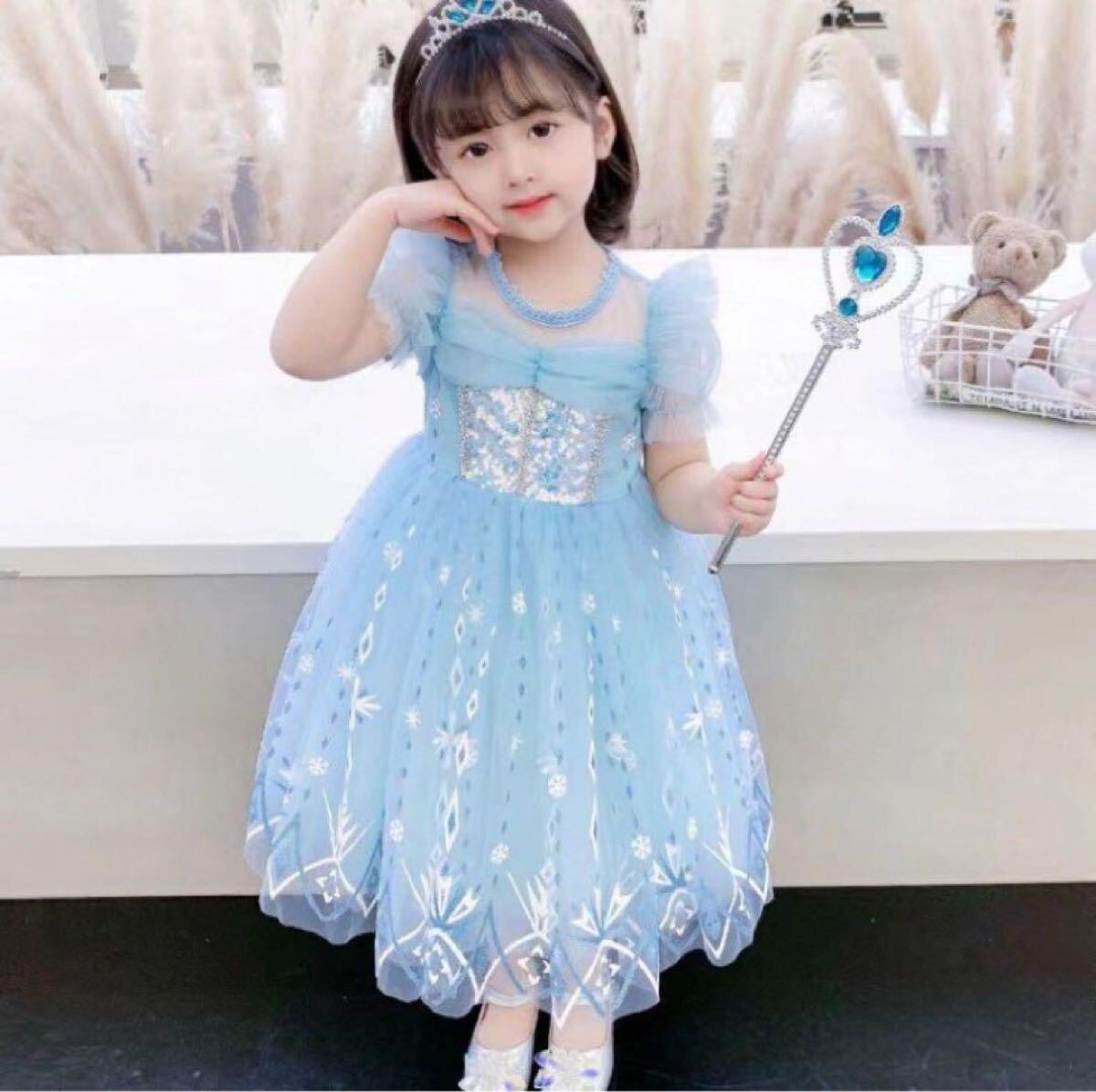◎きらめくスパンコールと雪の結晶デザインが華やかな子供用プリンセスドレスです