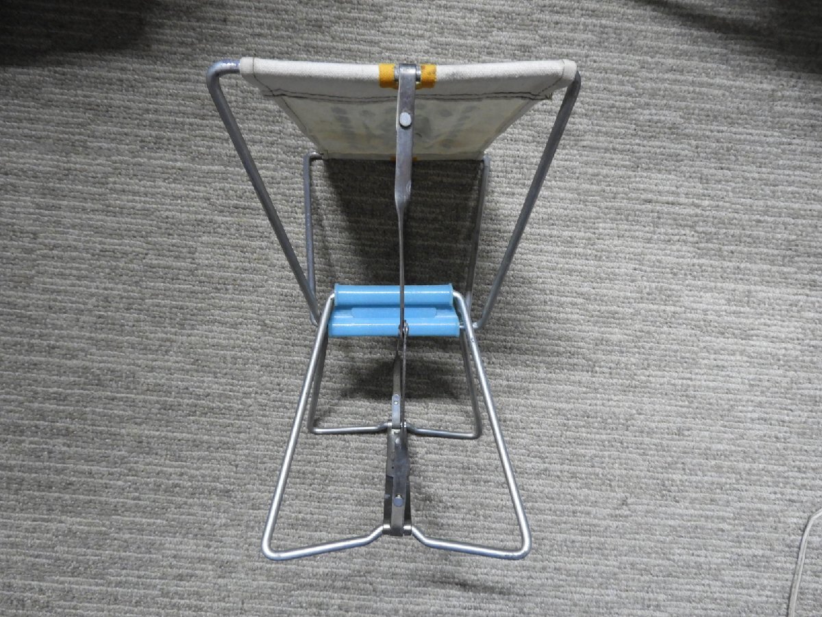 レトロなコンパクトサイズに折りたためる椅子になります。