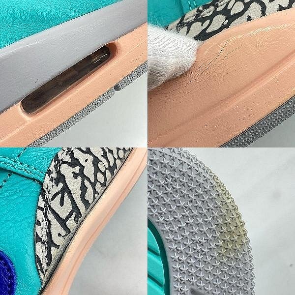 ※タグ付きの未使用品ですが、ソール剥がれが広範囲にございますので、観賞用・コレクション用とお考え下さい。 保管中・輸送中に破損が拡がる恐れのほか、劣化や加水分解の進行の恐れもある商品になります。日常使用としての機能の無い事をご了承の上、ご入札下さい。 ※恐れ入りますが、観賞用ですので商品の状態などに関してのクレームはご遠慮下さい。 ※保管に伴い、スレ、薄汚れ、変色、素材のヒビ割れ、エアーのくもり、繊維の付着等が見受けられます。 ※箱にダメージがございます。 | |||||||||||||||||||||||||