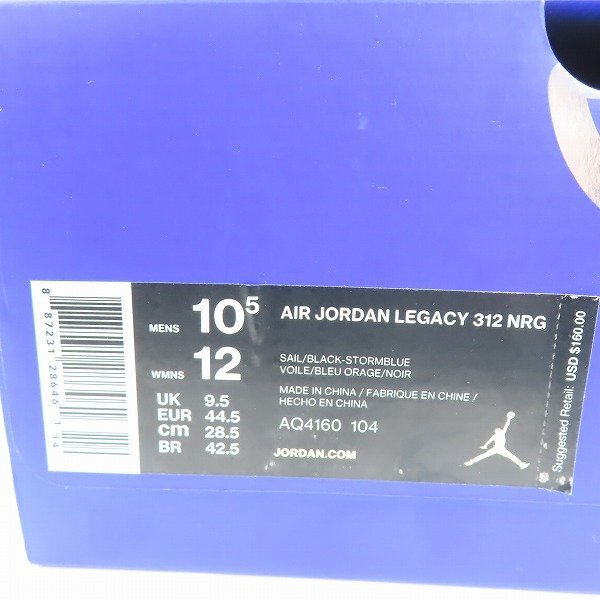NIKE/ナイキ AIR JORDAN LEGACY 312 NRG JUST DON STORM BLUE エアジョーダン レガシー AQ4160-104/28.5 /080 | |||||||||||||||||||||||||