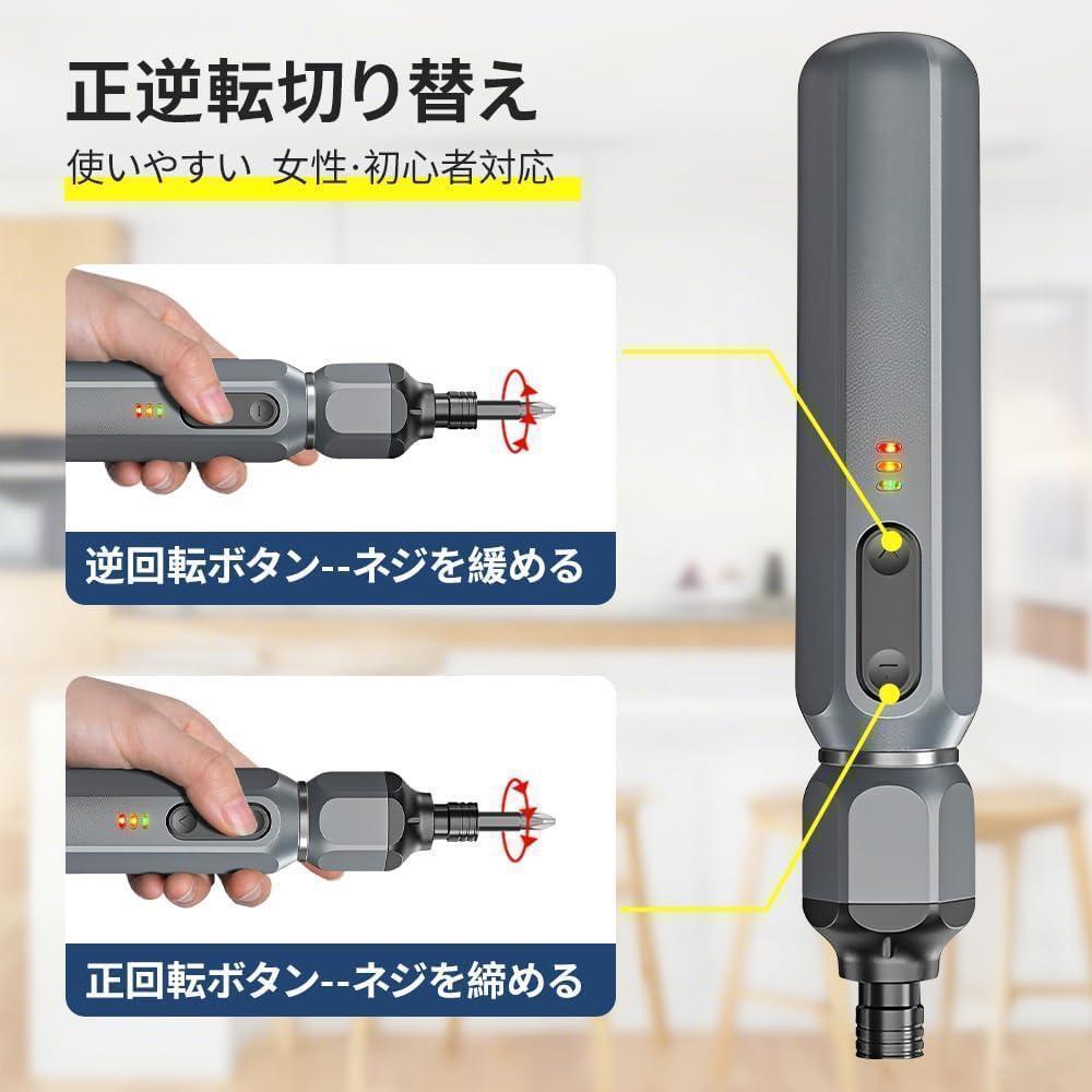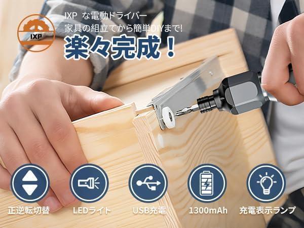 【電動・手動兼用&正逆回転切替&初心者に最適】この製品は24種類のビットと自動、手動の2種類の使用モードを搭載しており、日本の家庭の日常修理や家具組み立てのニーズに対応することができます。IXP電動ドライバーは使用の状況によって、手動か電動を選ぶことができます。電動の最大トルクは2N/m、手動の最大トルクは8N/m、ネジをスピーディに締めることができ、幅広いネジ緩めや締め付けなどに気楽に対応します。ワンタッチ操作で正回転(締め付け)と逆回転(取り外し)を瞬時に切り替えられます。作業の流れを中断することなく、効率的な作業が可能です。高性能の3.6Vモーターを搭載して、最大回転数250回転/分を実現し、DIYからプロ作業まで幅広く対応!