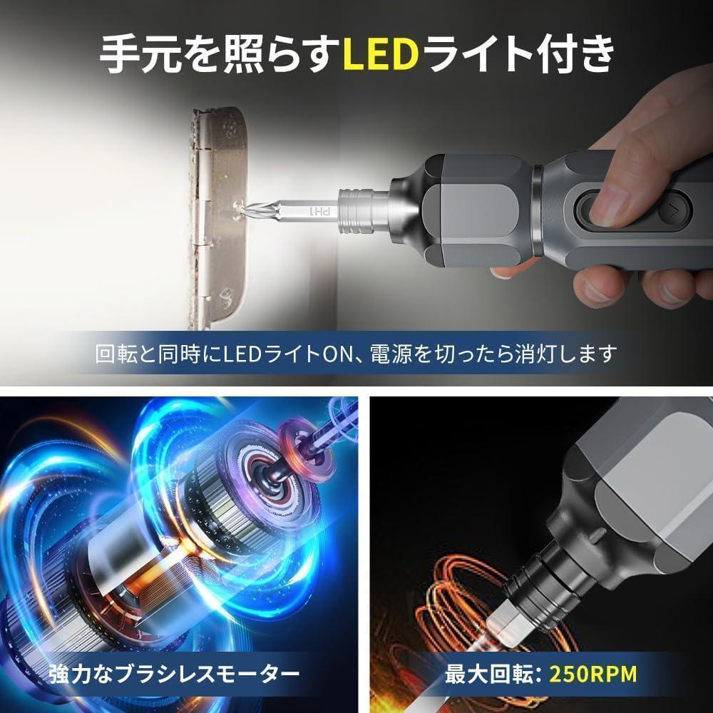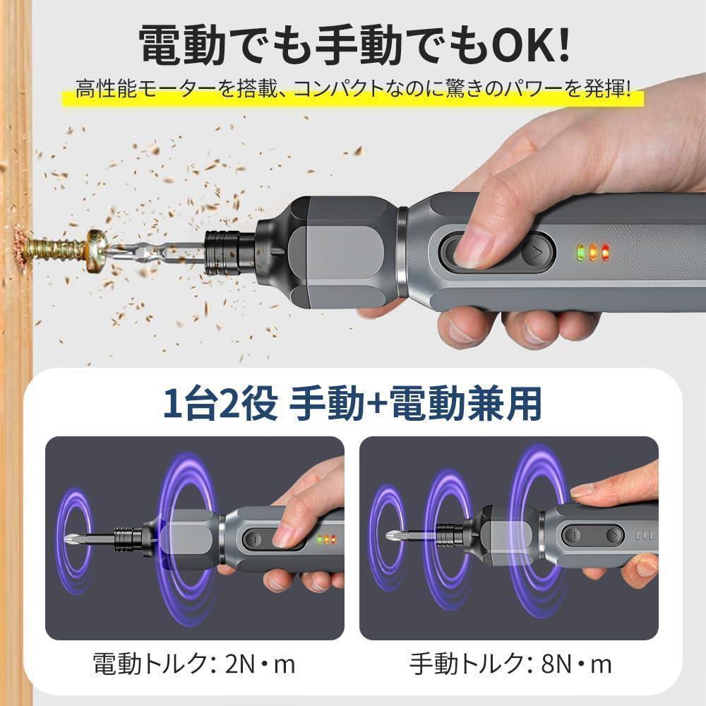 LEDライト 電動ドライバーセット 手動8N.m 電動トルク2N.m 充電ドライバー 軽量 正逆転切り替え コードレス 磁気ビット付き ネジ締め 24本ビット 1本フレキシブルシャフト 1本コネクティングロッド 日本語説明書付 DIY 家具の組み立て 家庭用 工具セット 初心者対応