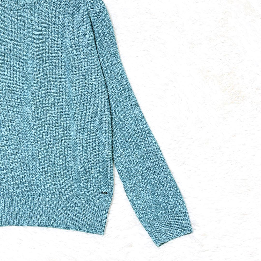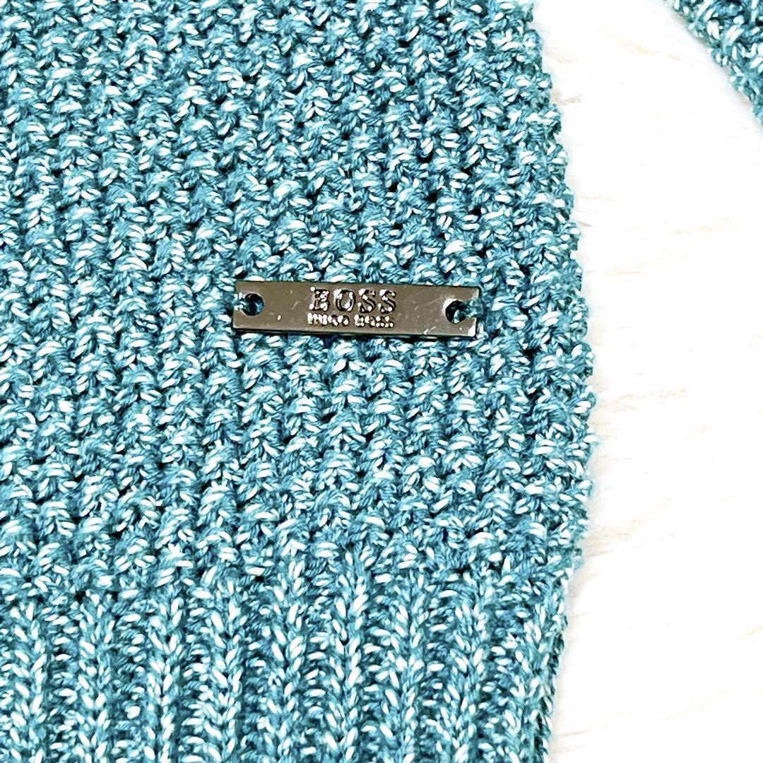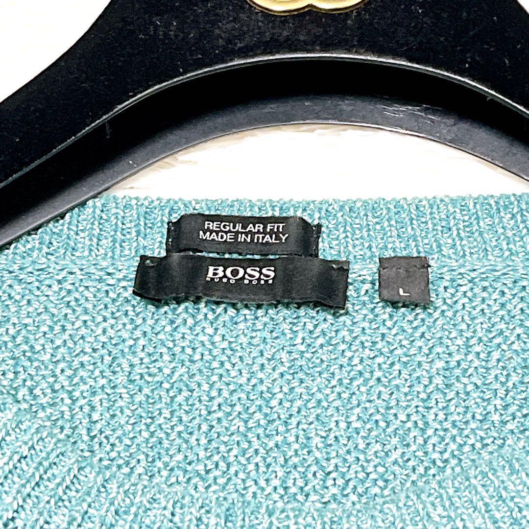 HUGO BOSS ヒューゴボス コットンニット セーター 編み込み BOSSメタルタグ Lサイズ グリーン ターコイズブルー イタリア製 大きいサイズ Lサイズ