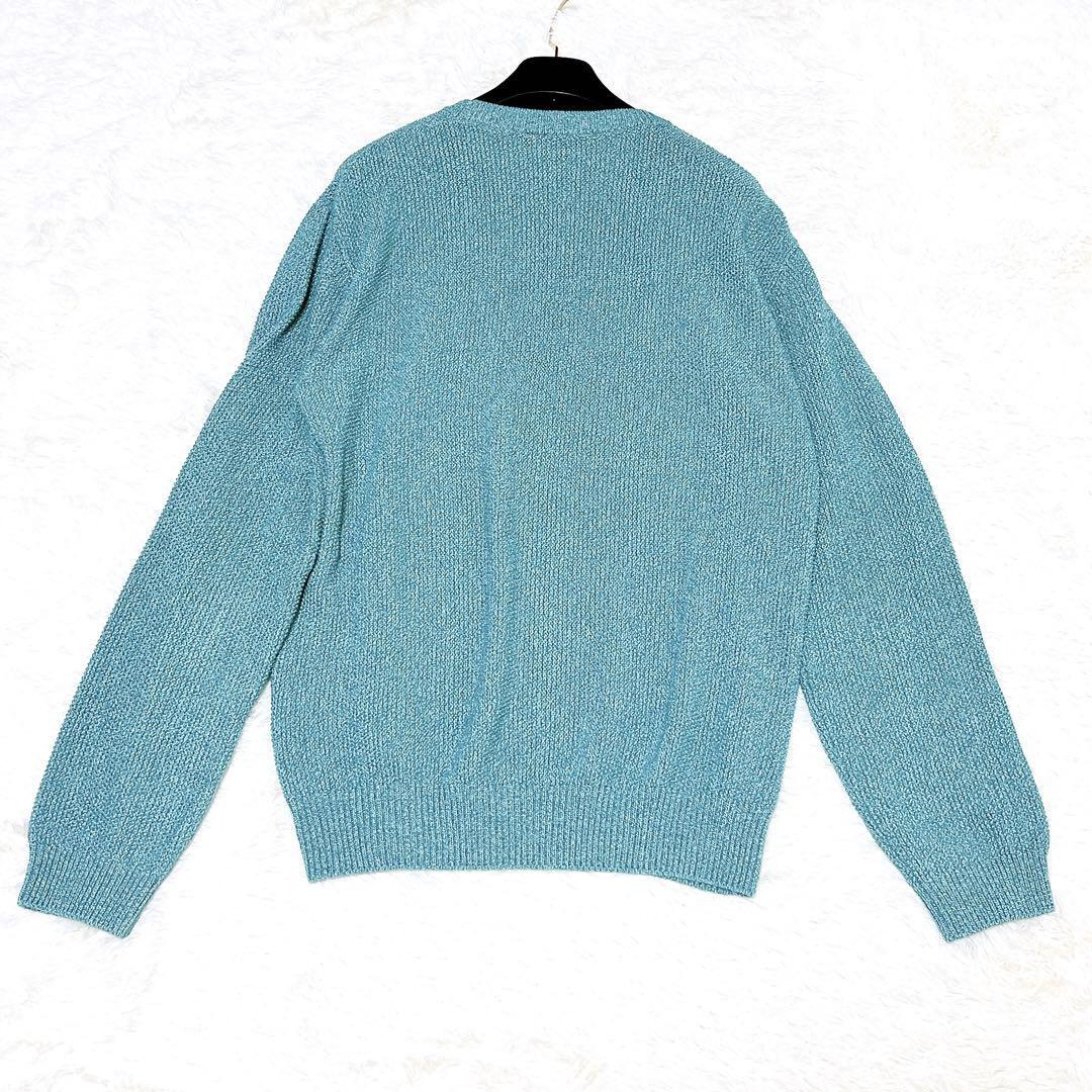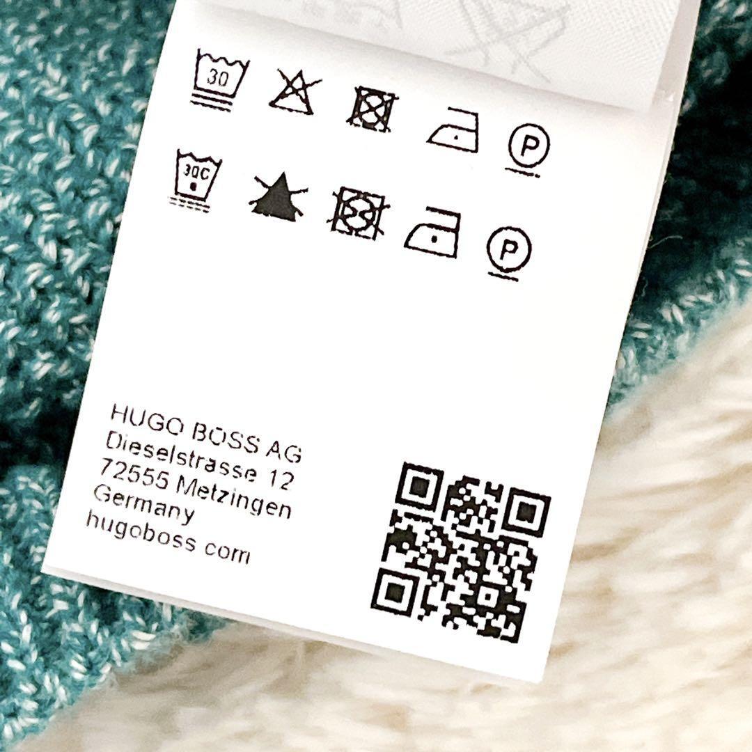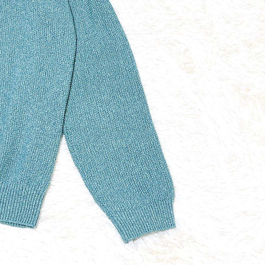 HUGO BOSS ヒューゴボス コットンニット セーター 編み込み BOSSメタルタグ Lサイズ グリーン ターコイズブルー イタリア製 大きいサイズ Lサイズ