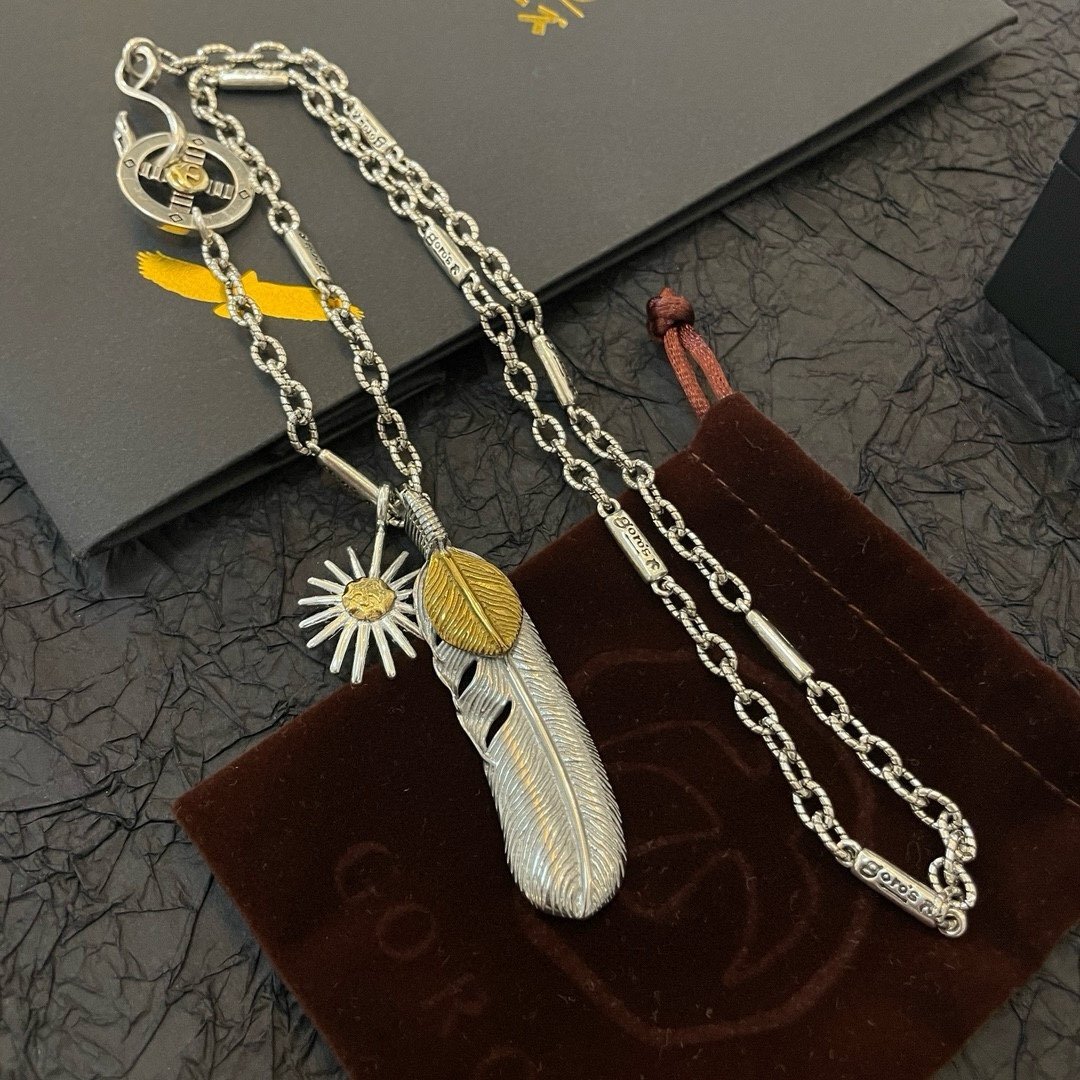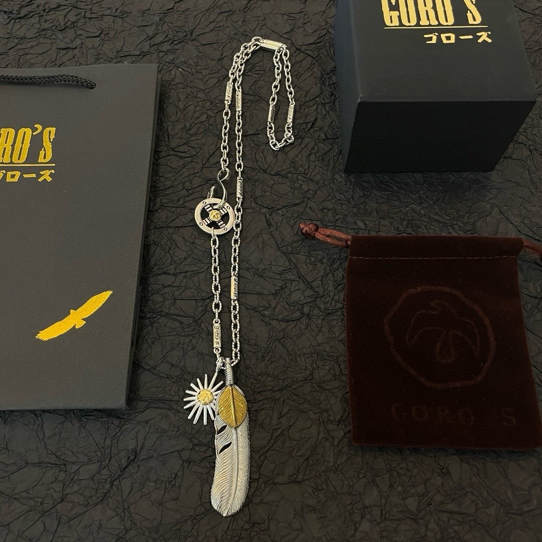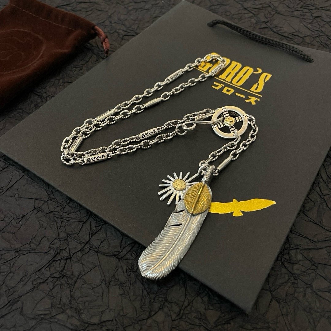 ゴローズ goro's 銀縄 太陽メタル メタル付き特大フェザー タタキ ネックレス ペンダント ビッグ イーグ