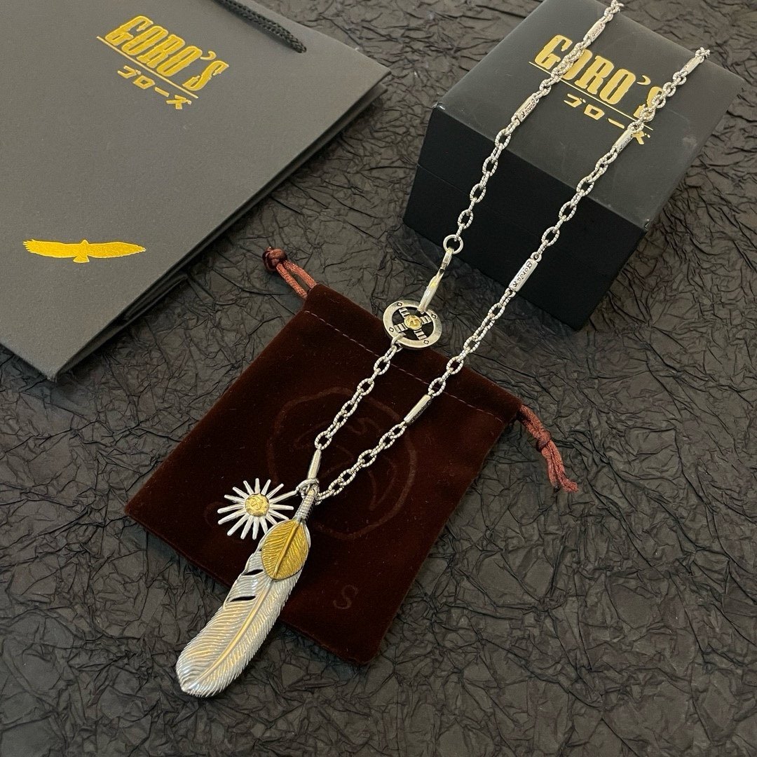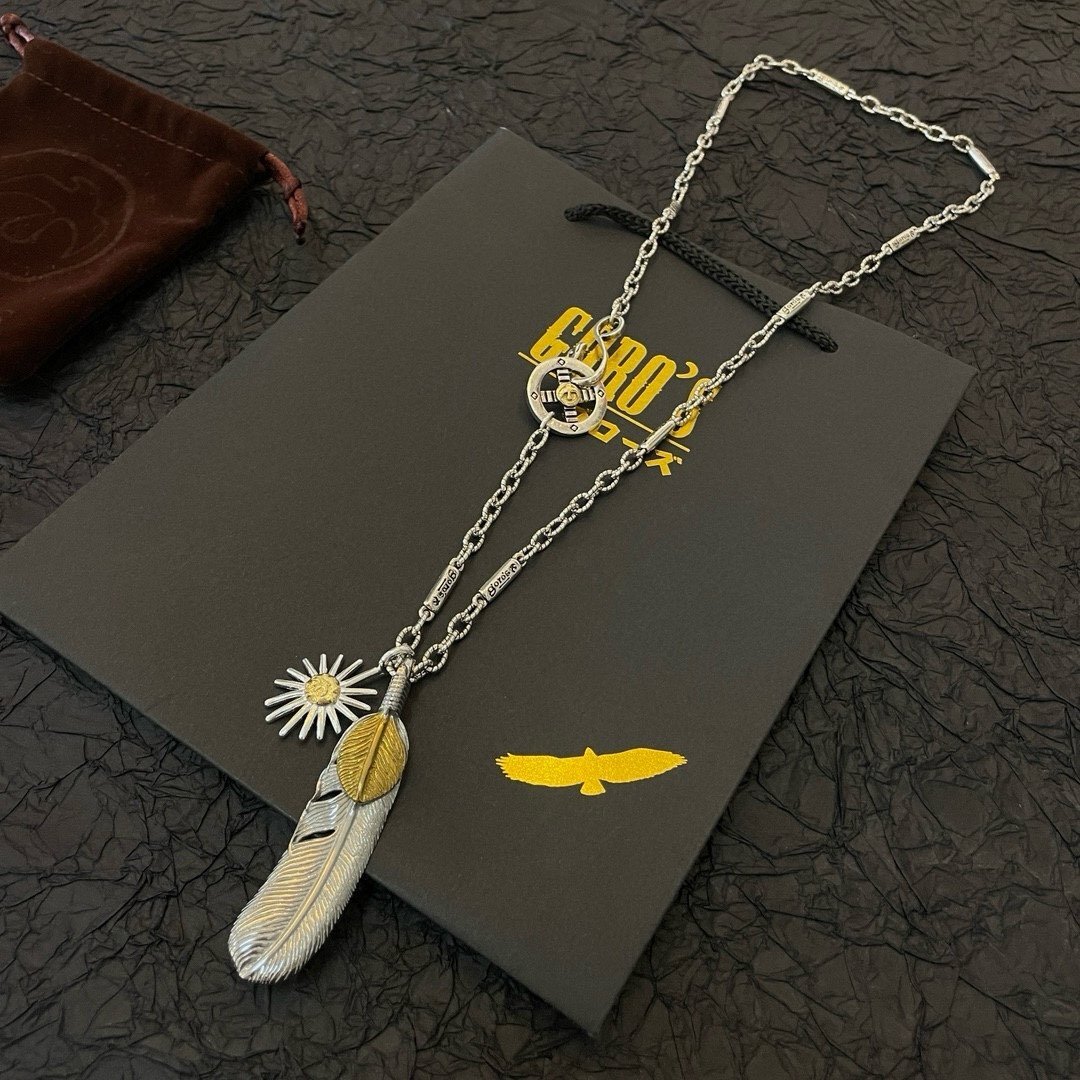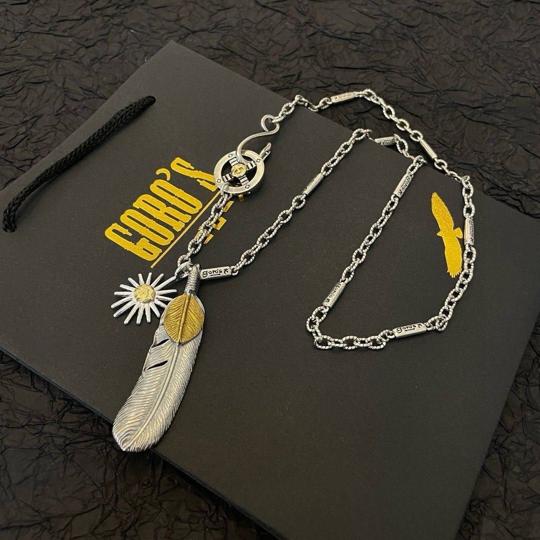 ゴローズ goro's 銀縄 太陽メタル メタル付き特大フェザー タタキ ネックレス ペンダント ビッグ イーグ