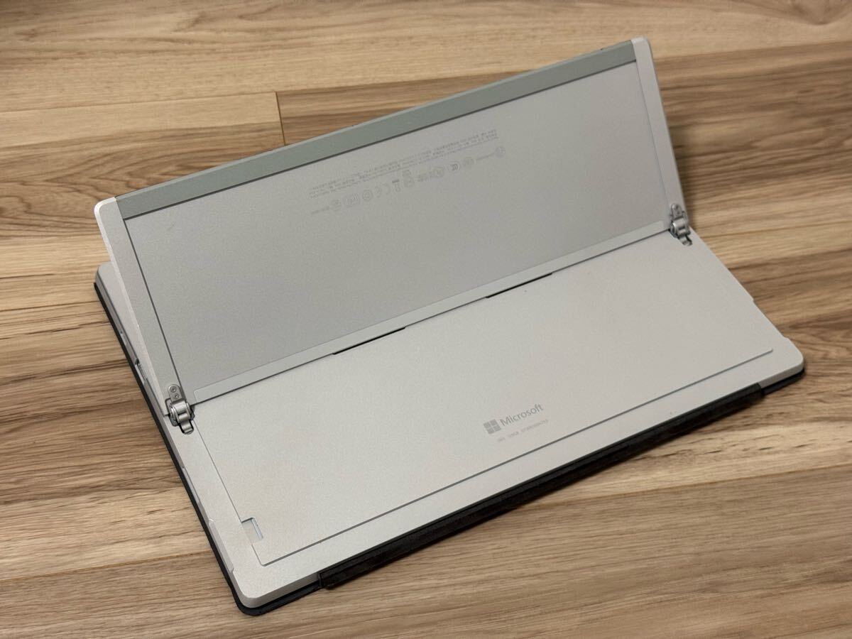 背面は保護シートを貼っていたので傷はほとんどありません。ディスプレイはガラスフィルムを貼付したままお譲り致します。専用キーボードはそれなりに使用感があります。初期化済みです。