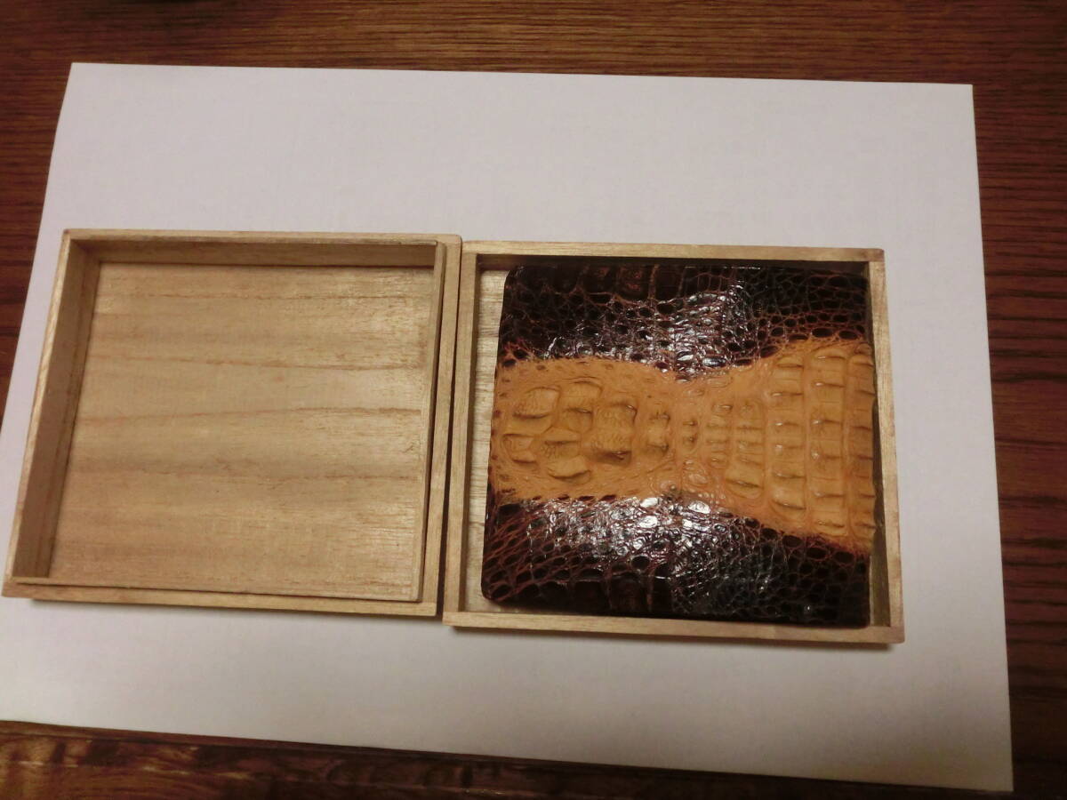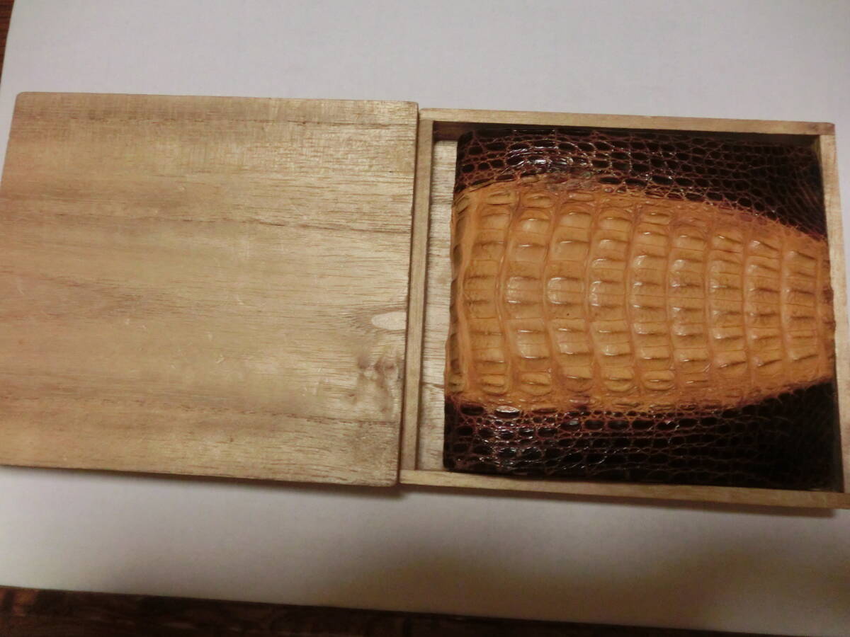 当時物、美品、未使用、自宅保管、桐箱付き、背ワニ、2つ折り財布の出品です。