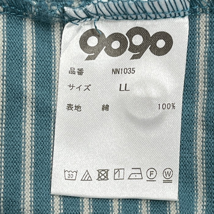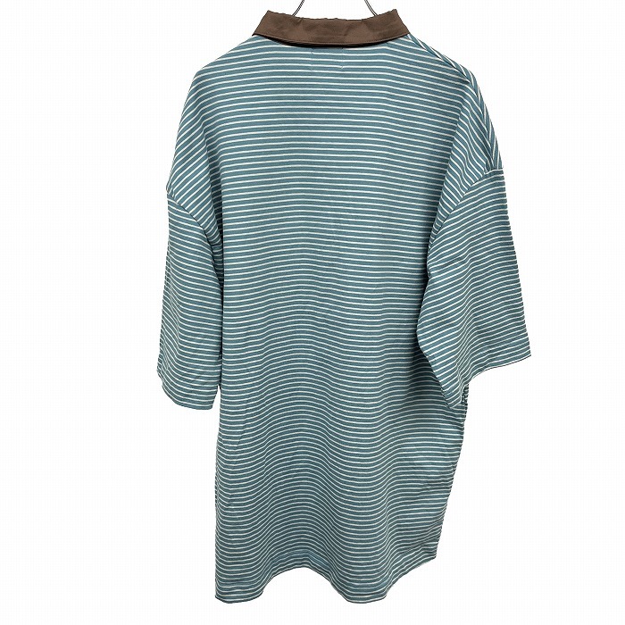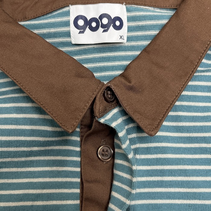 商品タイトル | ナインティナインティ 9090 NINETY NINETY ポロシャツ ボーダー ロゴ刺繍 5分袖 綿100% LL XL グリーンブルー系 青緑×茶×ゴールド メンズ |