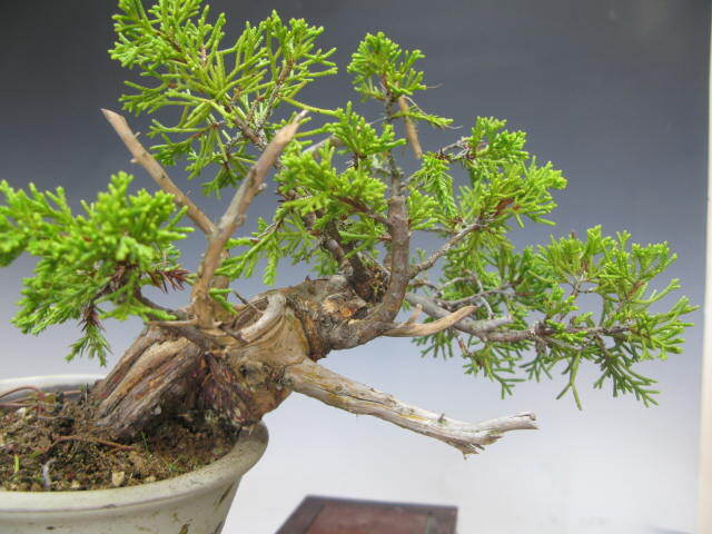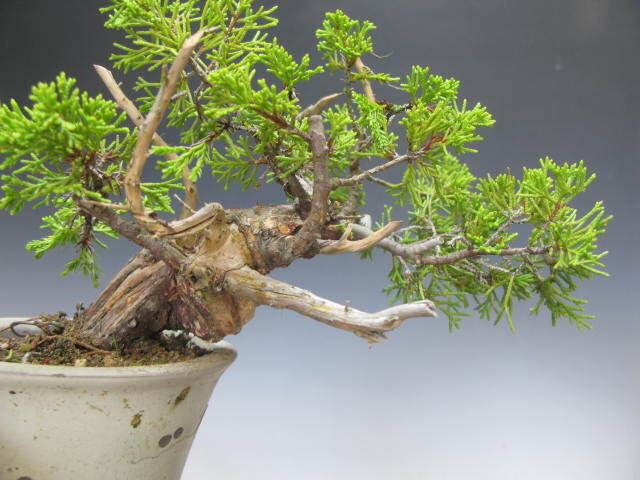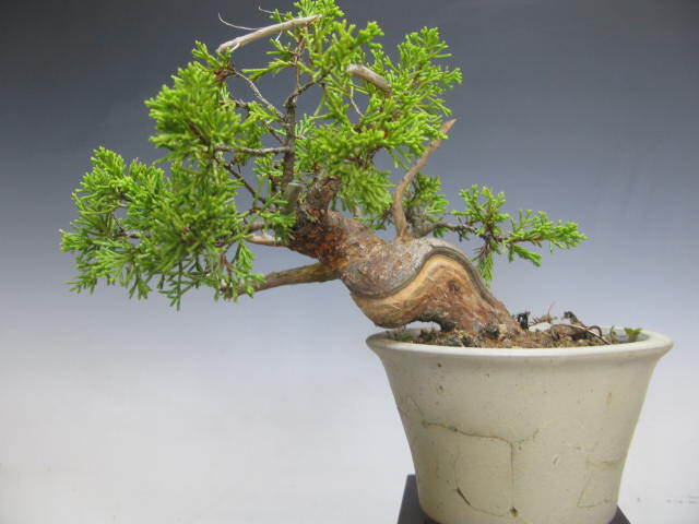 ★糸魚川真柏の小品盆栽素材です、幹模様もよく枝付きも良好で葉が乗ればいい木になるでしょう、鉢に傷がありますが、植え替え時期ではありませんので、鉢替えしておりません。
