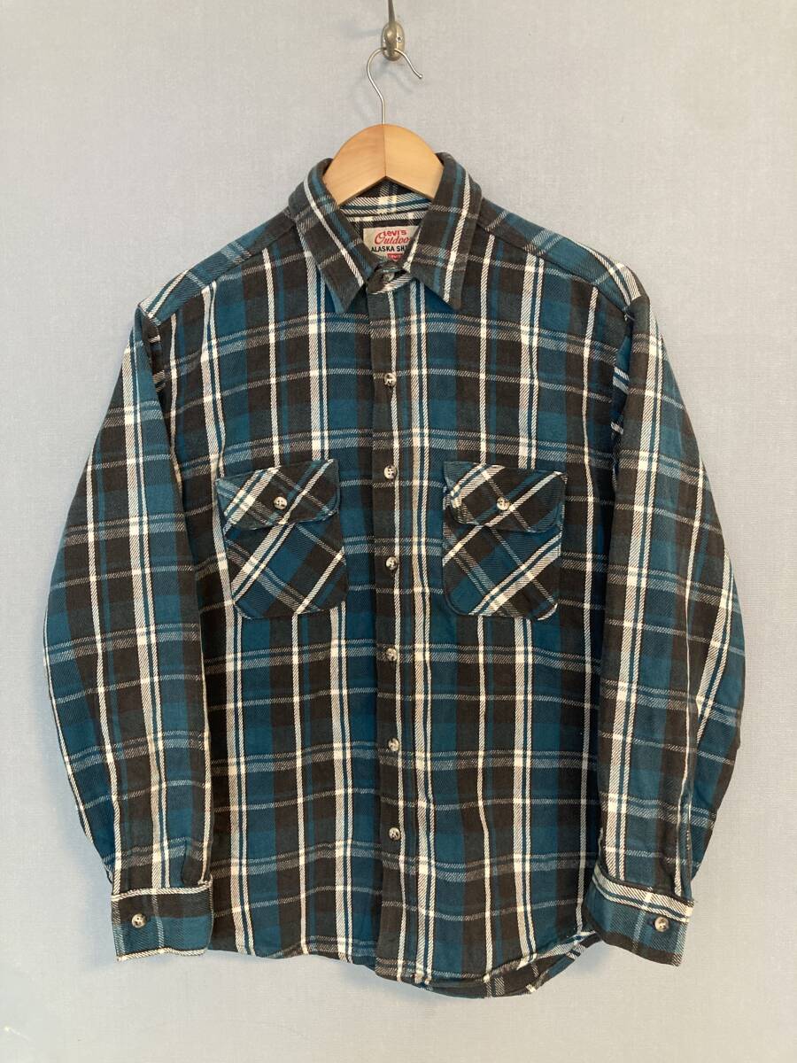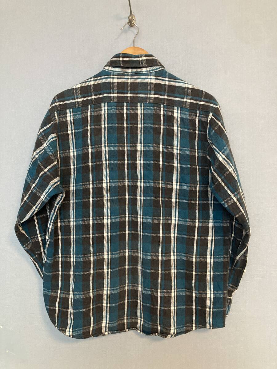商品名:Levis ALASKA SHIRTS チェック柄 長袖ネルシャツ サイズ:表記L 平置き:肩幅47,5cm 身幅(脇下~脇下)59cm 着丈(襟付根~裾)72,5cm 袖丈(肩~袖裾)57cm ※素人採寸の為多少の誤差はご了承ください。 カラー:ブルー系、ブラックグレー系、ホワイト 状態:MADE IN USA。コットン系生地※表記無し(ヘビーネル)。ボタンフラップポケット×2。右袖にリペアあり(画像9,10)。その他幾分かの使用感等ありますが雰囲気良いと思います。 発送方法:レターパックプラス(配達記録付600円) ※古物になりますので神経質な方、ご理解の無い方の御入札はお控え下さい。送料、振込手数料は落札者様の御負担となります。ノークレーム、ノーリターンでお願い致します。