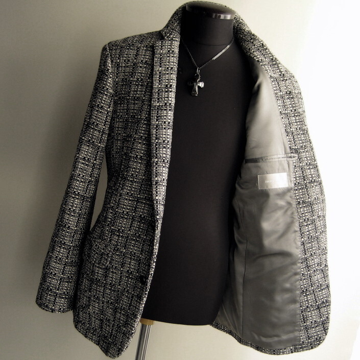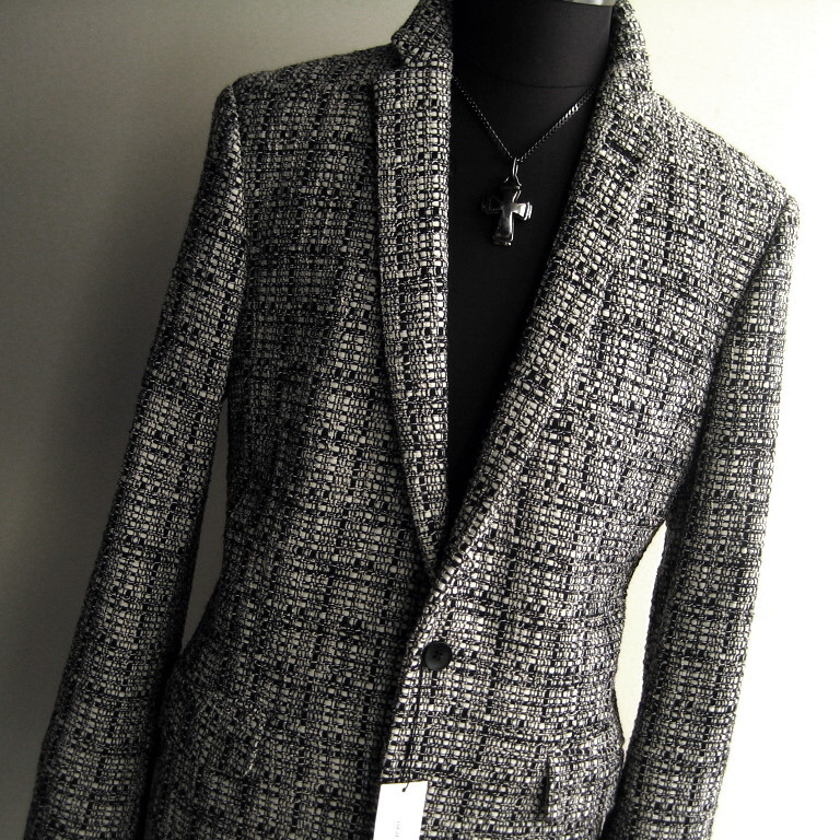 4.6万 新品 L ハイストリート ファンシーツィードジャケット イタリア生地 ブラック サンプル 467