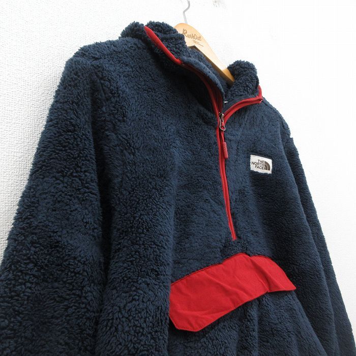 【商品名】 M★古着 ノースフェイス 長袖 ハーフジップ フリース ジャケット パーカー メンズ ワンポイントロゴ ヒジ当て 紺