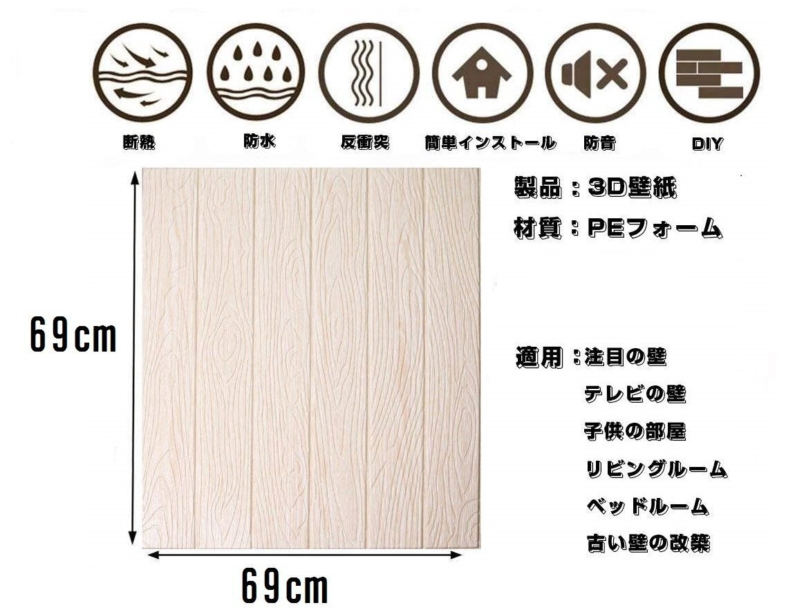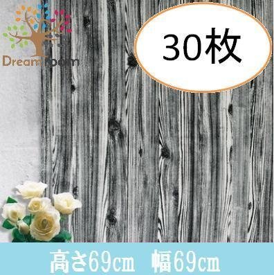【30枚】高品質 3D クッション 壁紙シール 木目 グレー 糊付き はがせる クロス 69×69cm アンティーク 耐水 抗菌 落書き 傷防止