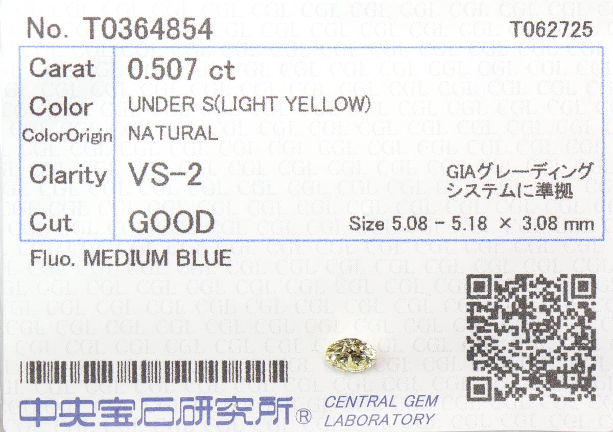 VS2!0.507ct 天然ダイヤ LIGHT YELLOW(ナチュラルカラー)GOOD