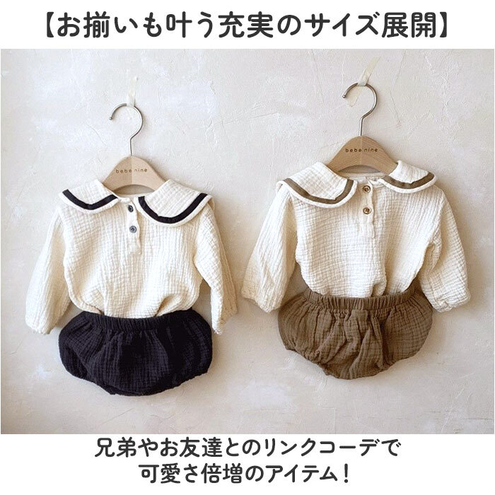 | 商品説明 | ・・【特別な日を彩る一着】 ・結婚式などお祝いの席でフォーマルにも使えるセットアップ◎ ・ ・【かぼちゃパンツでお洒落に】 ・フォーマルからカジュアルまで着回せる上下セット。 ・ ・【お揃いも叶う充実のサイズ展開】 ・兄弟やお友達とのリンクコーデで可愛さ倍増のアイテム! ・ ・【憧れのセーラースタイル】 ・やんちゃなベビーもセーラーカラーでスマートに変身。 ・ ・【日常使いも可能な万能デザイン】 ・カジュアルなシーンにも映えるかぼちゃパンツのセット♪ ・ ・【優しいコットン素材の肌触り】 ・デリケートな赤ちゃんの肌に安心な触りごこちの良い生地〇 |
