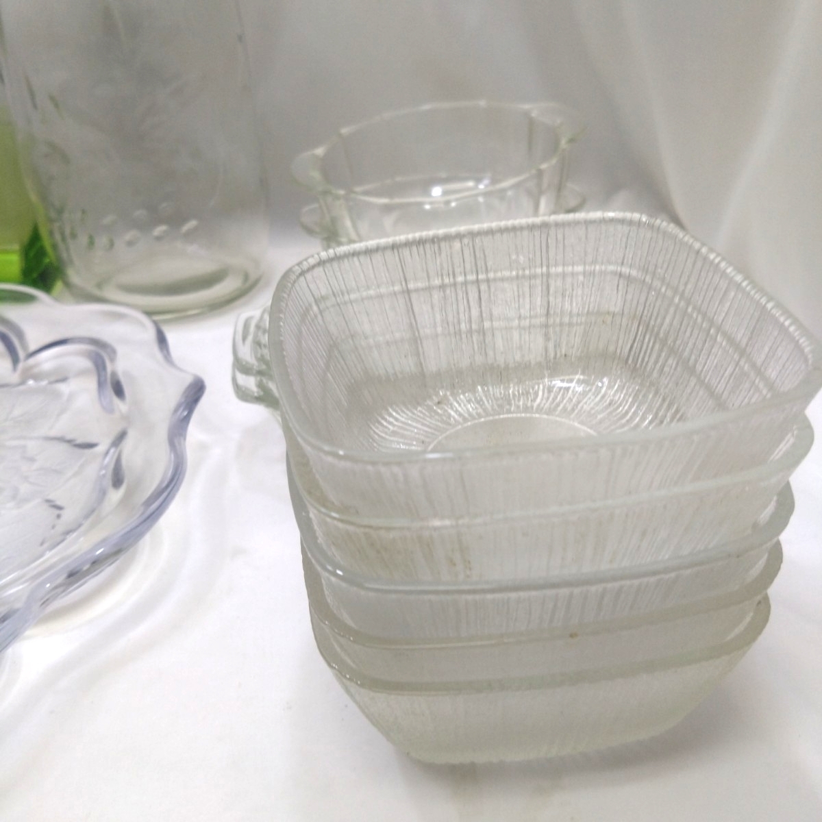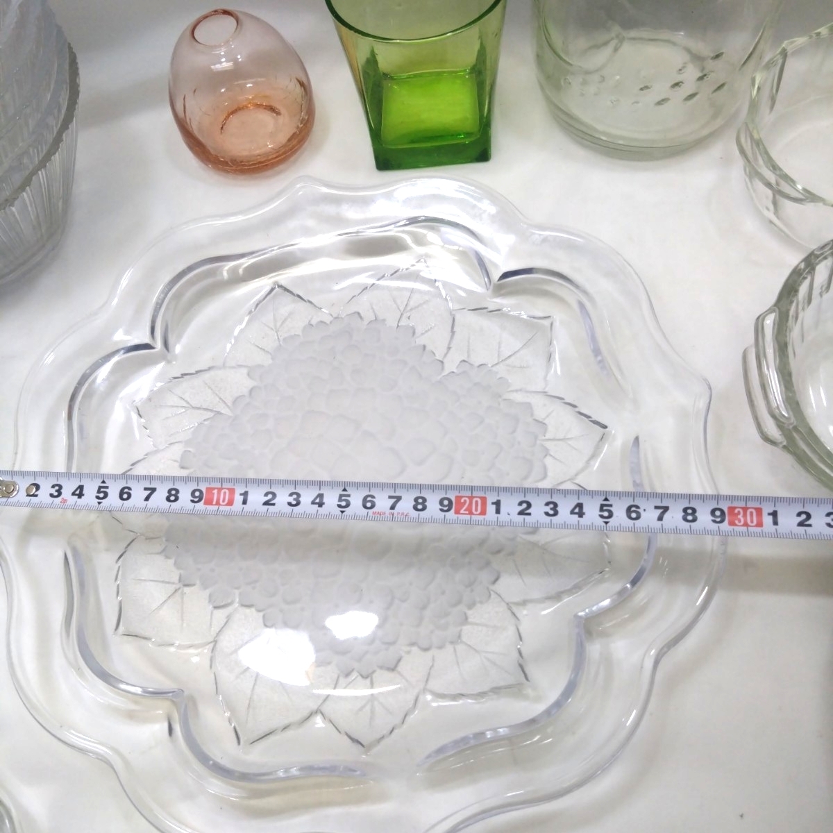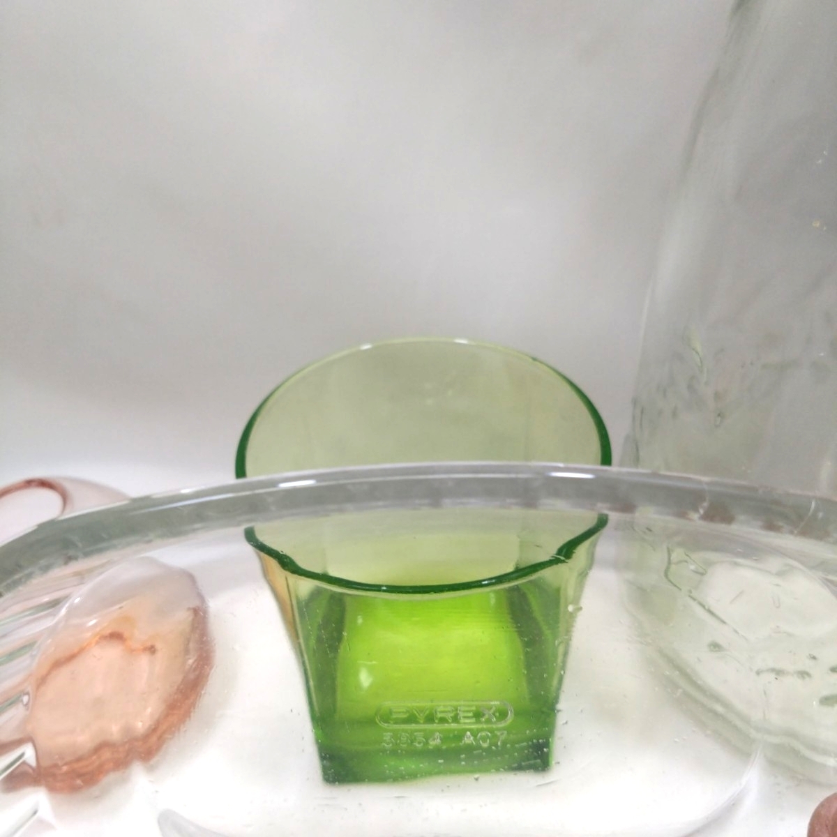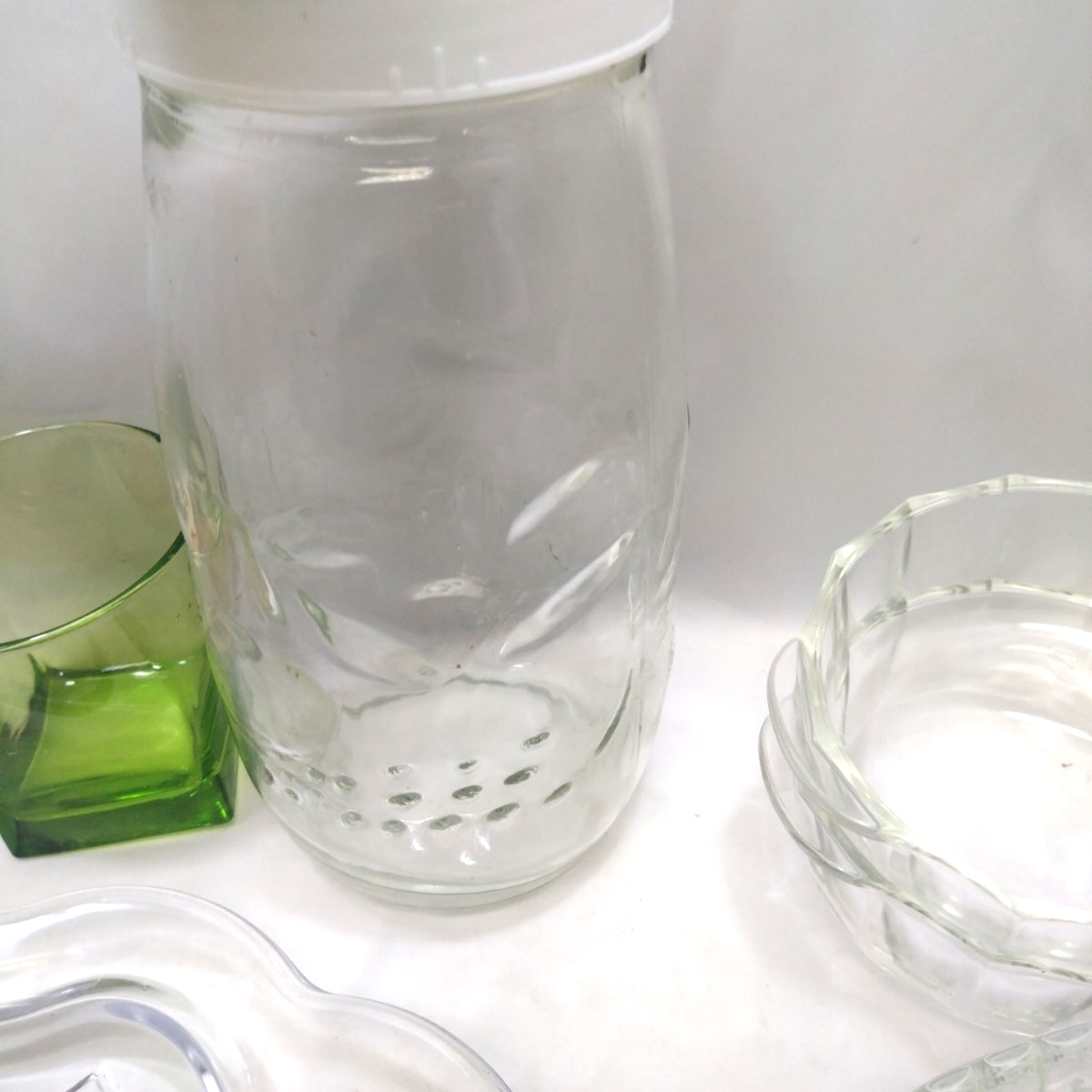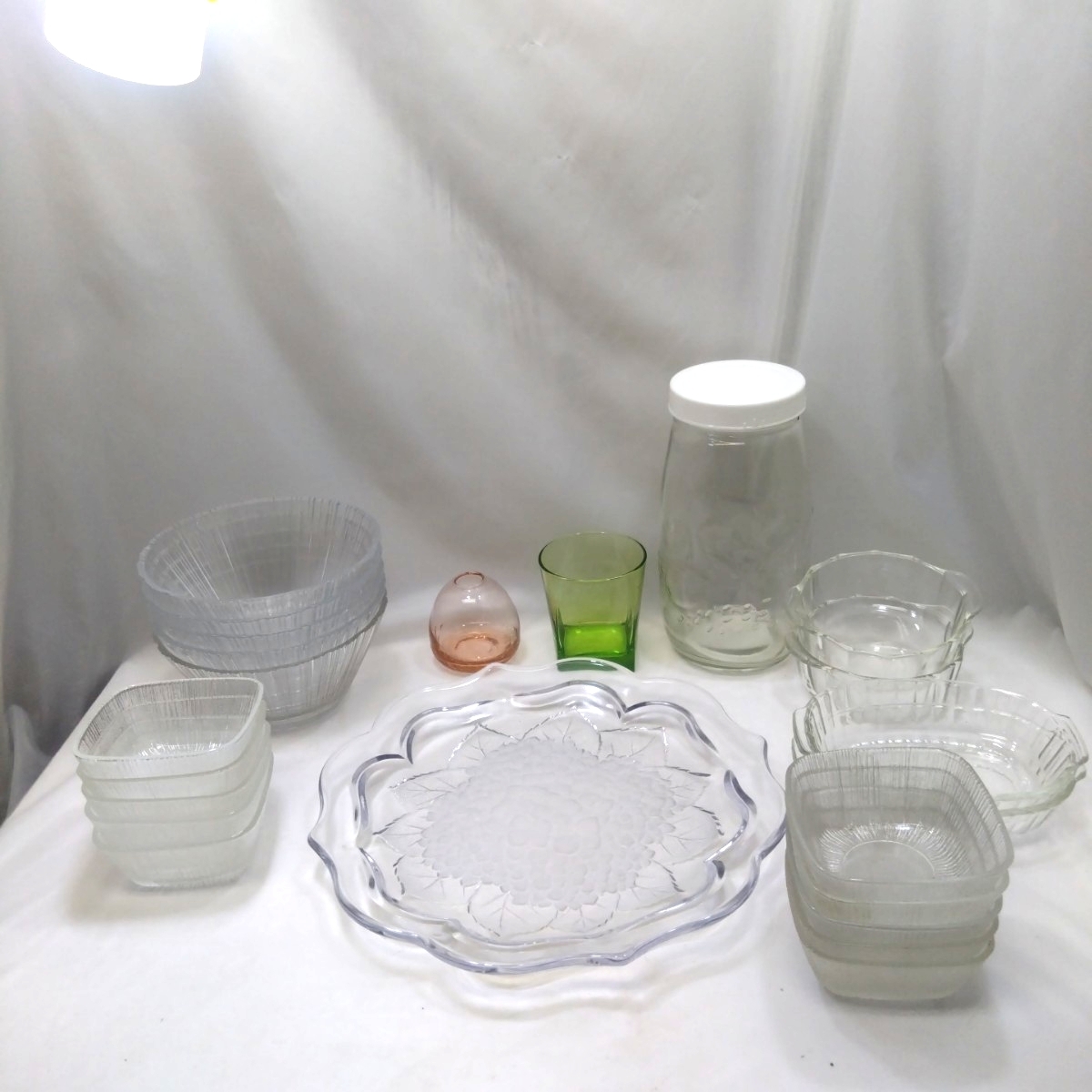 | ■まとめ レトロ 食器 ガラス製品 カラー硝子 大皿1 中鉢型5 小鉢10 グラタン皿2+2(Pyrex)パイレックス グラス1 一輪挿し1 模様瓶1■ |