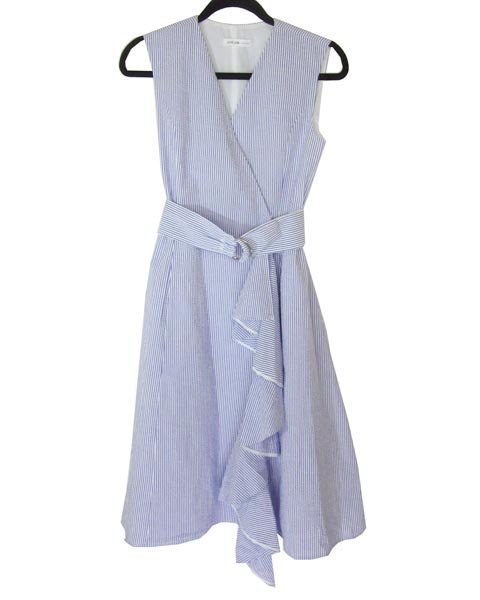 アディアム フォクシー 白 ブルー ストライプ ノースリ ワンピース XS |