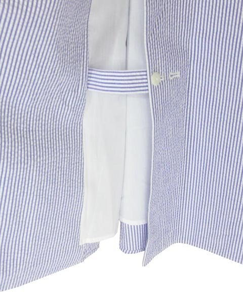 商品名 | 白 ブルー ストライプ ノースリ ワンピース 40 |