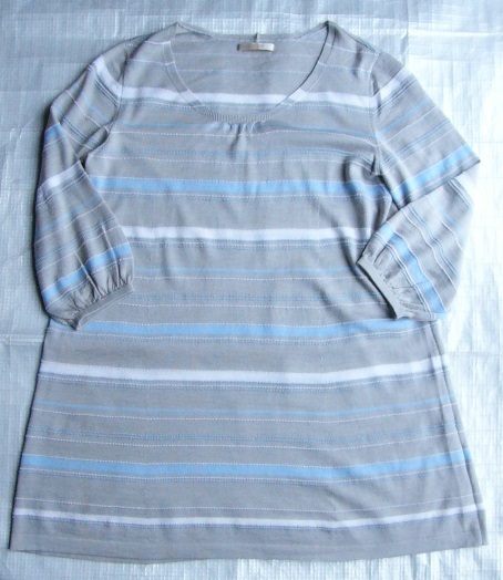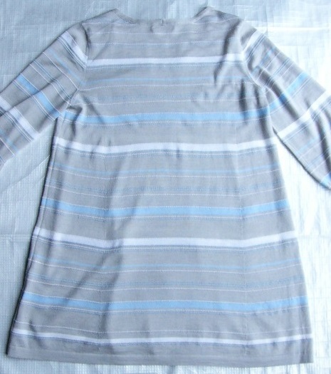 お色は、淡いグレー・水色・白の変則ボーダーです。