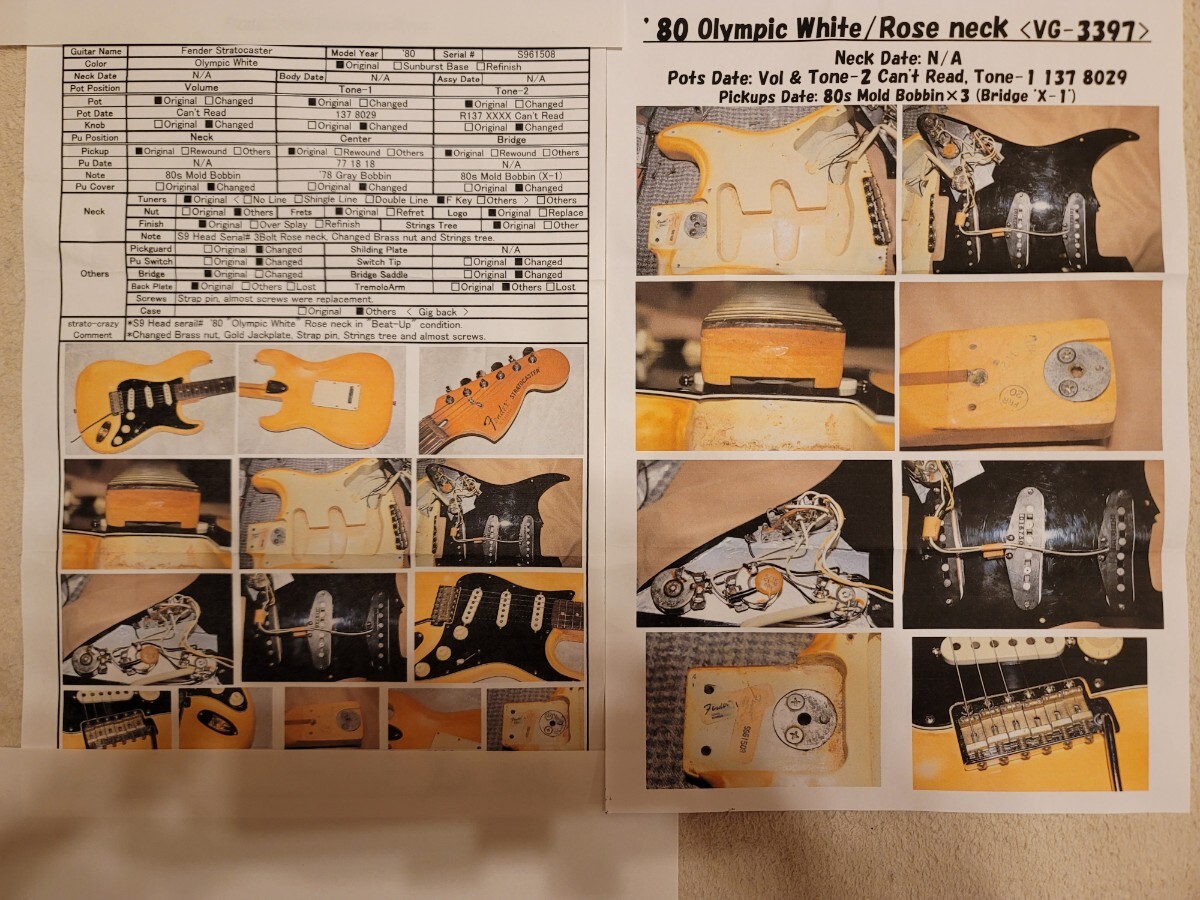 ヴィンテージ 80年製 Fender USA Stratocaster Olympic White Beat Up Rose Neck