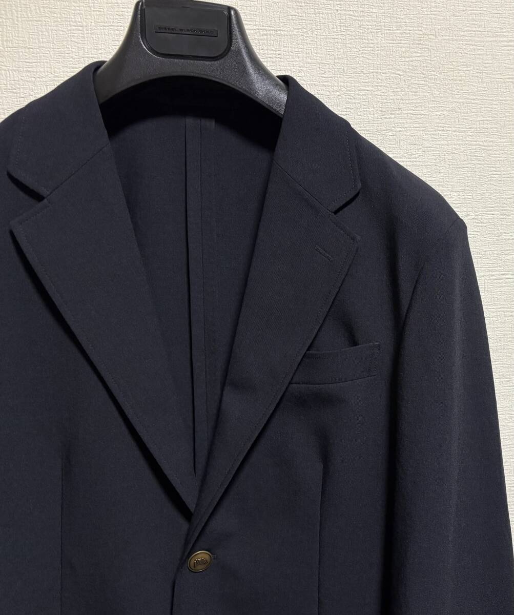 ほどよいボリュームのあるラペル幅なのでカジュアルからきれいめまで、あらゆるスタイリングに合わせやすい。