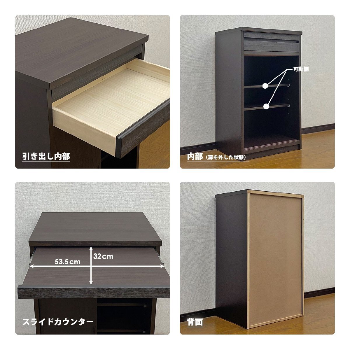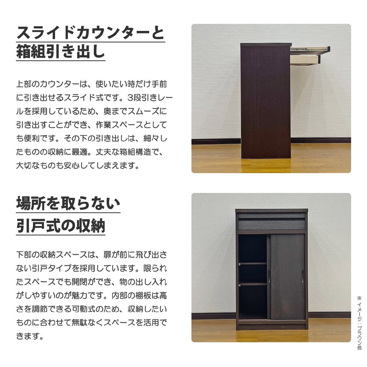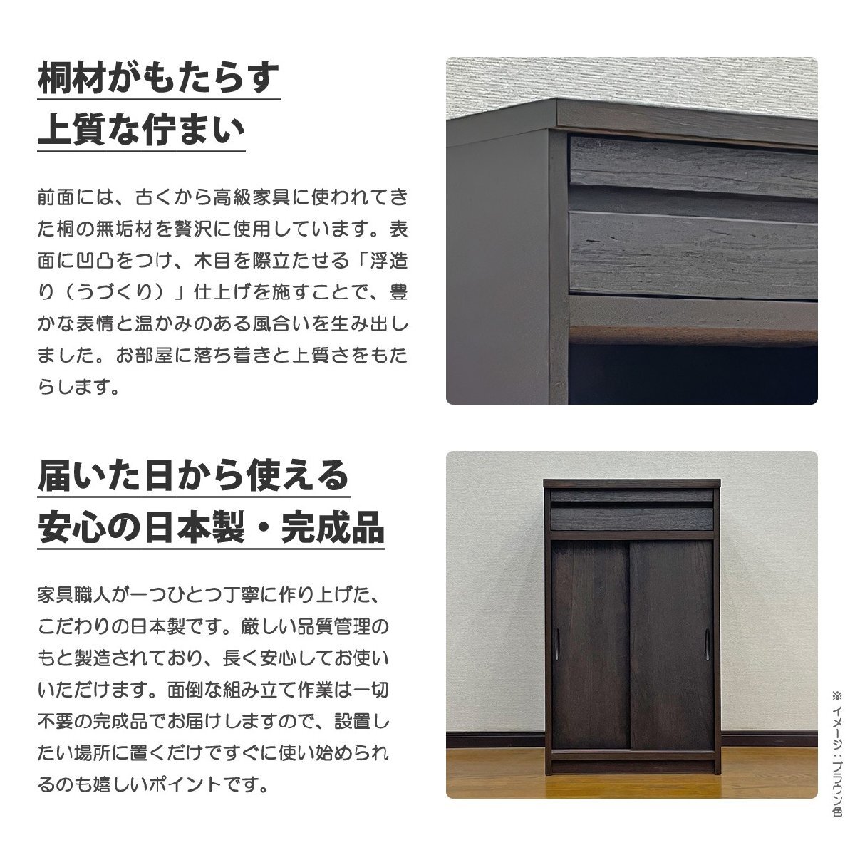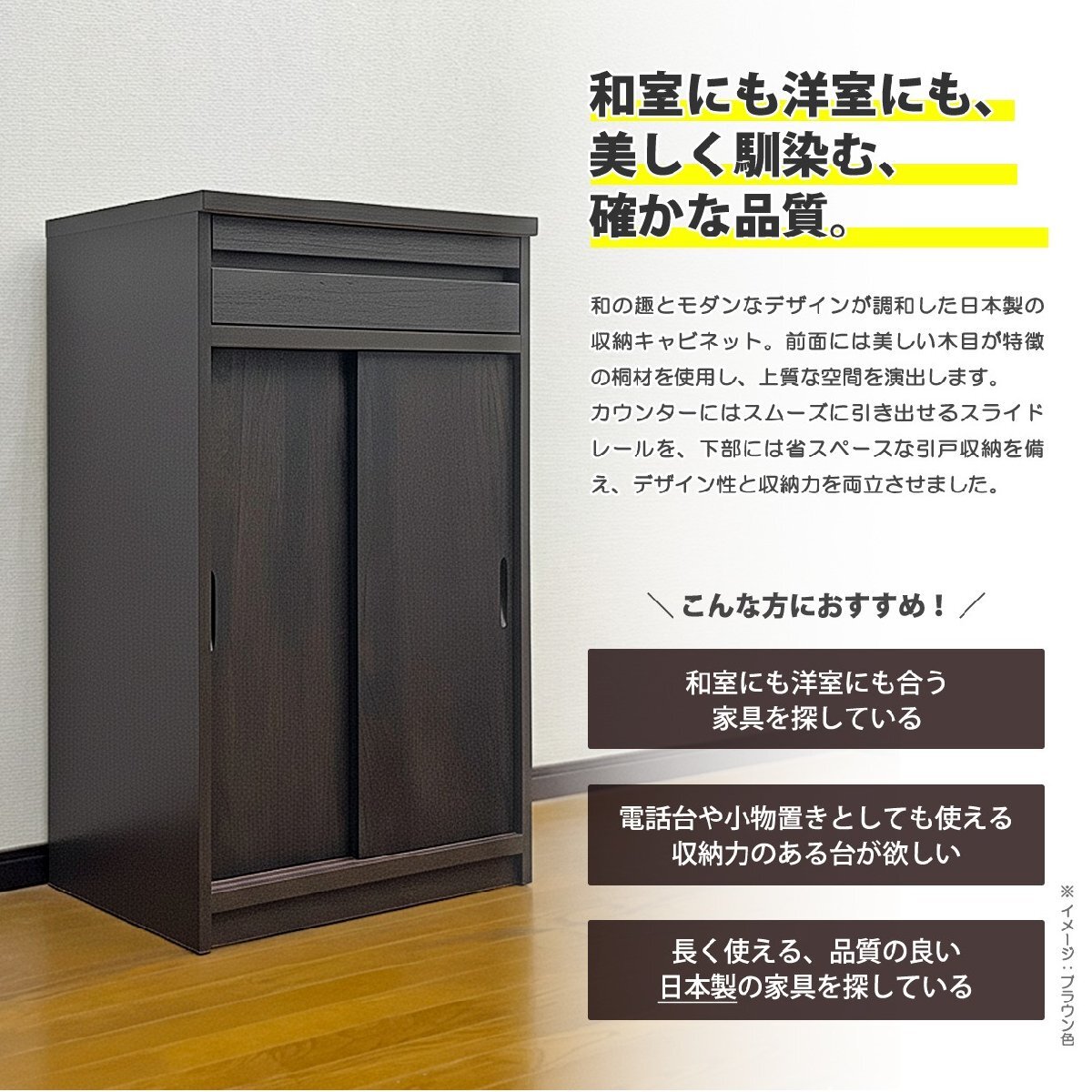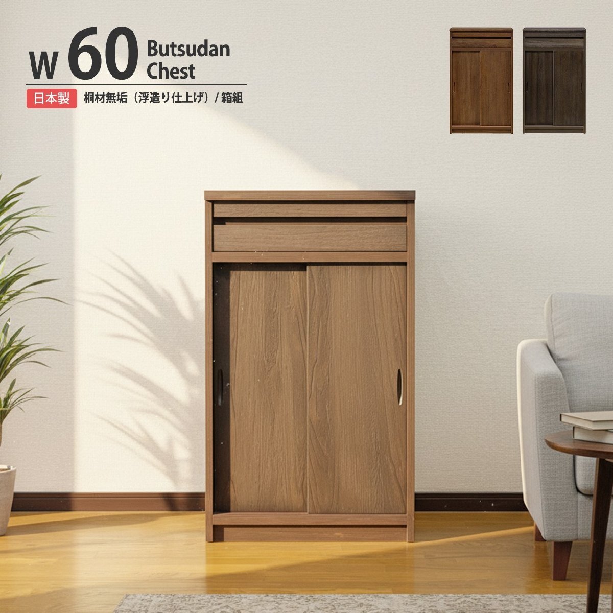 仏壇台 幅60cm チェスト 完成品 日本製 桐材 スライドカウンター 引き出し 引戸 和風 和モダン ライトブラウン