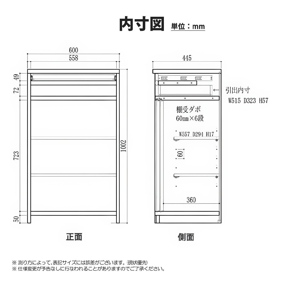 商品サイズ本体:幅60×奥行44.5×高さ100.2 cm