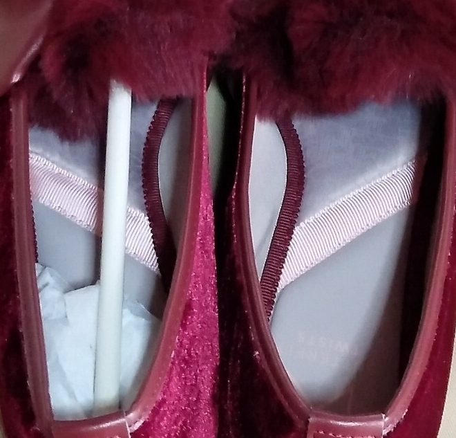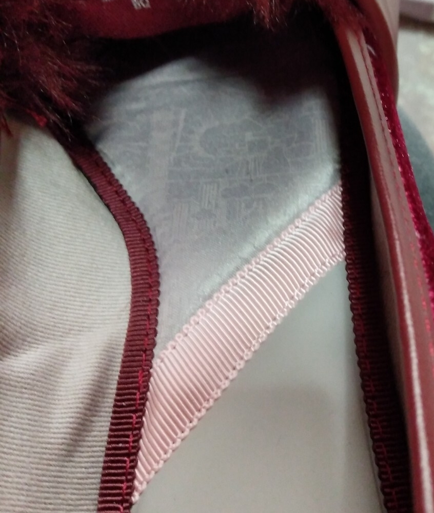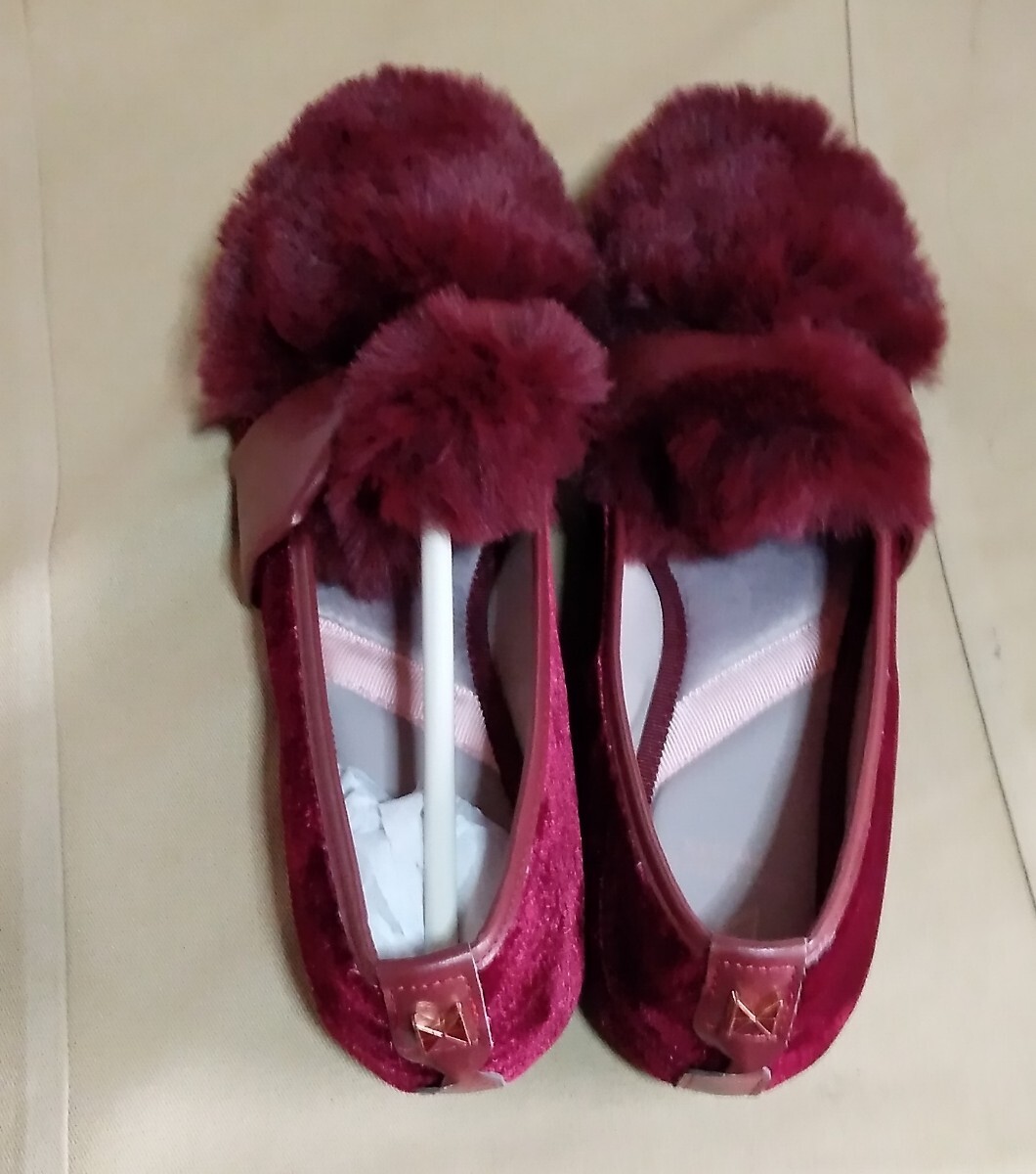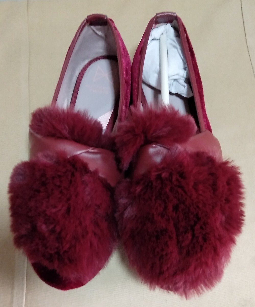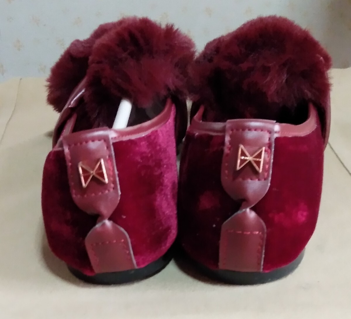 素材はフェイクファー、ファーを留めている合皮、かかとも合皮、それ以外がベロアです。